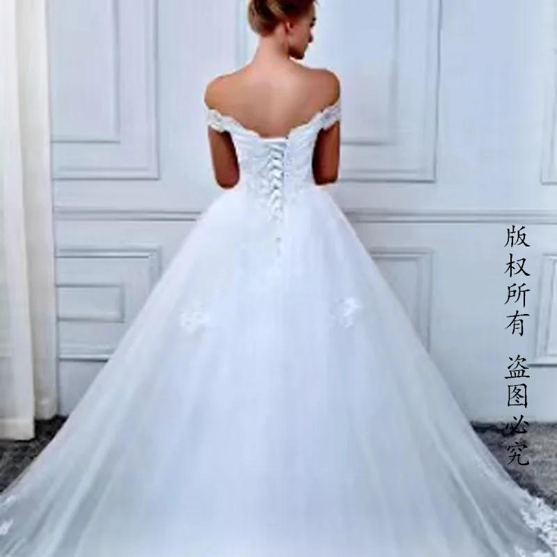 Винтажное свадебное платье E JUE SHUNG с кружевной аппликацией, свадебные платья с открытыми плечами и шнуровкой сзади, свадебное платье, платье для невесты