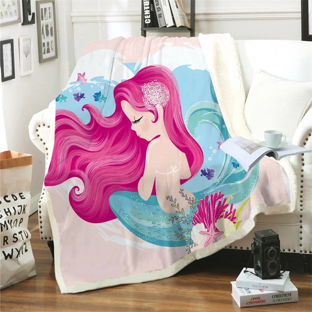 Плюшевое одеяло с капюшоном, 3D мультяшный принт русалки, шерпа, флис, микрофибра, плед, 2019, Прямая поставка