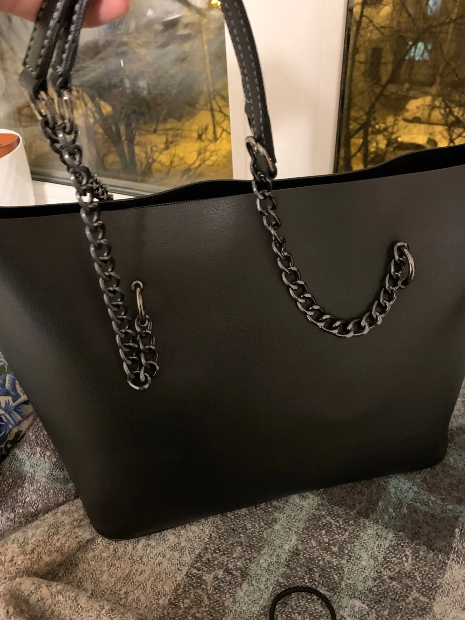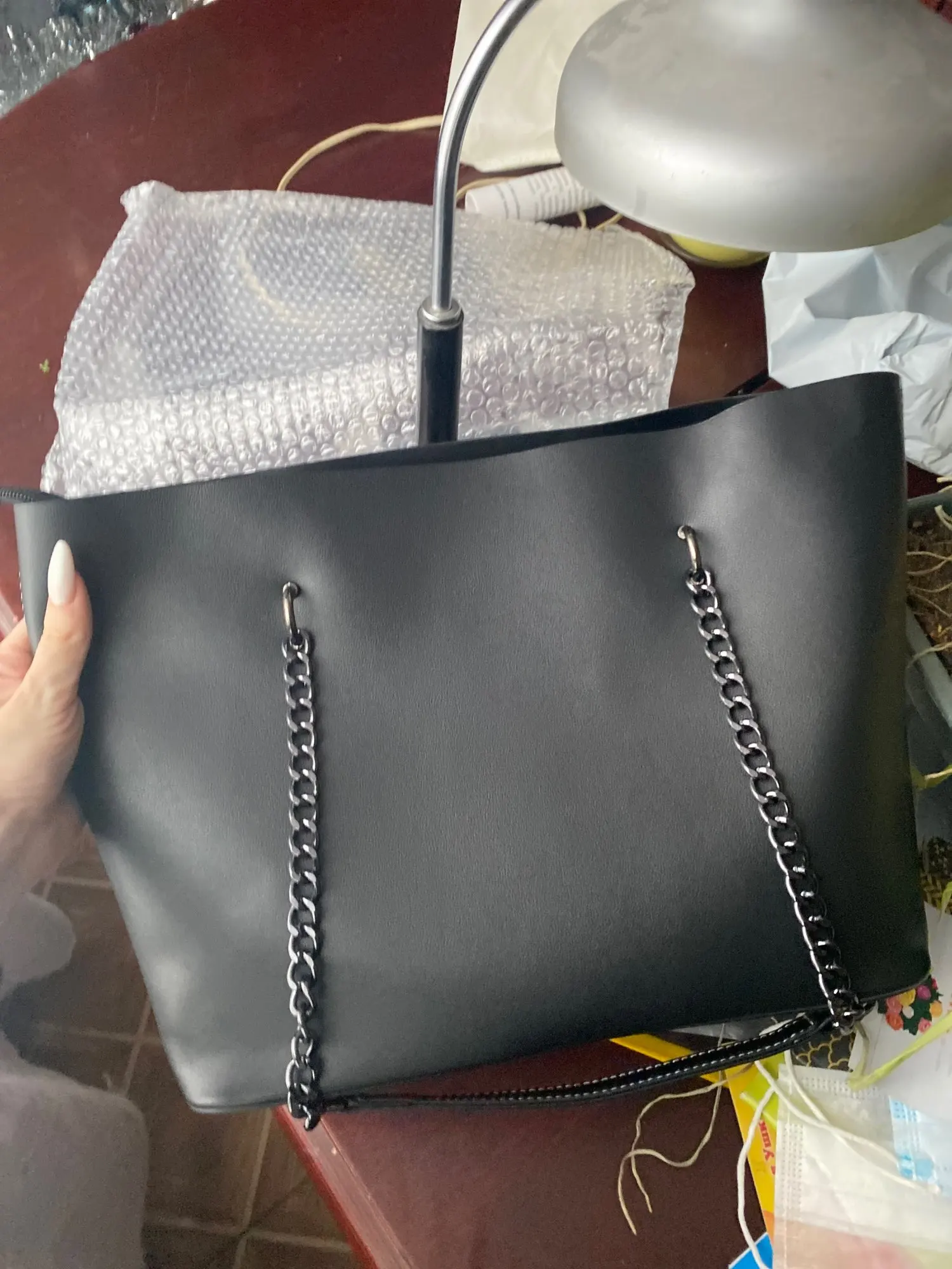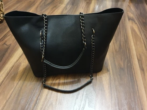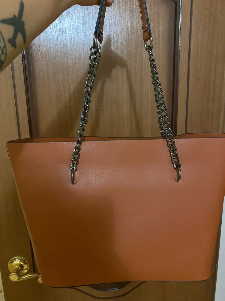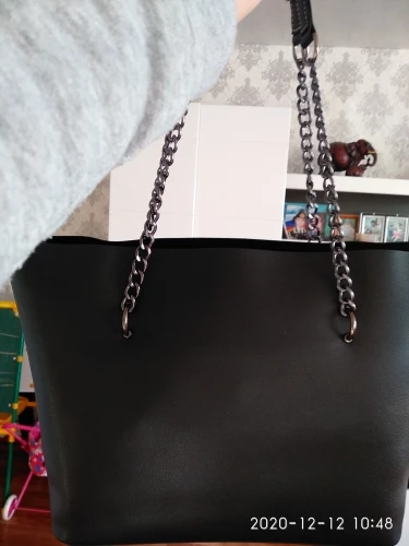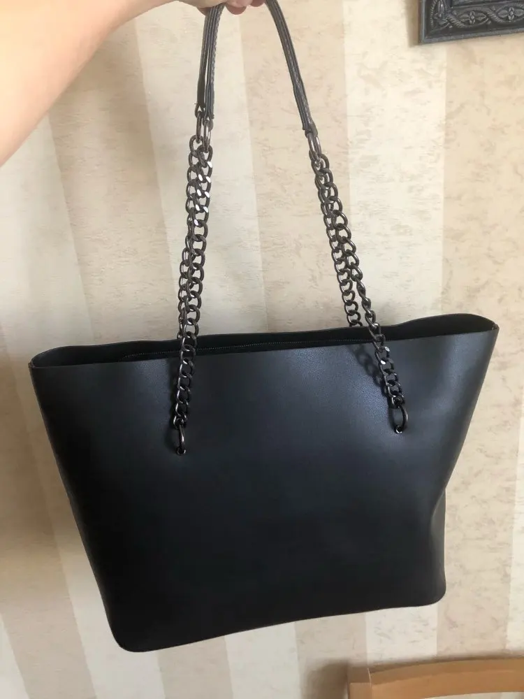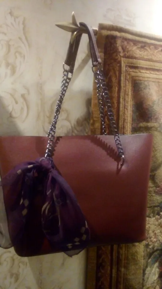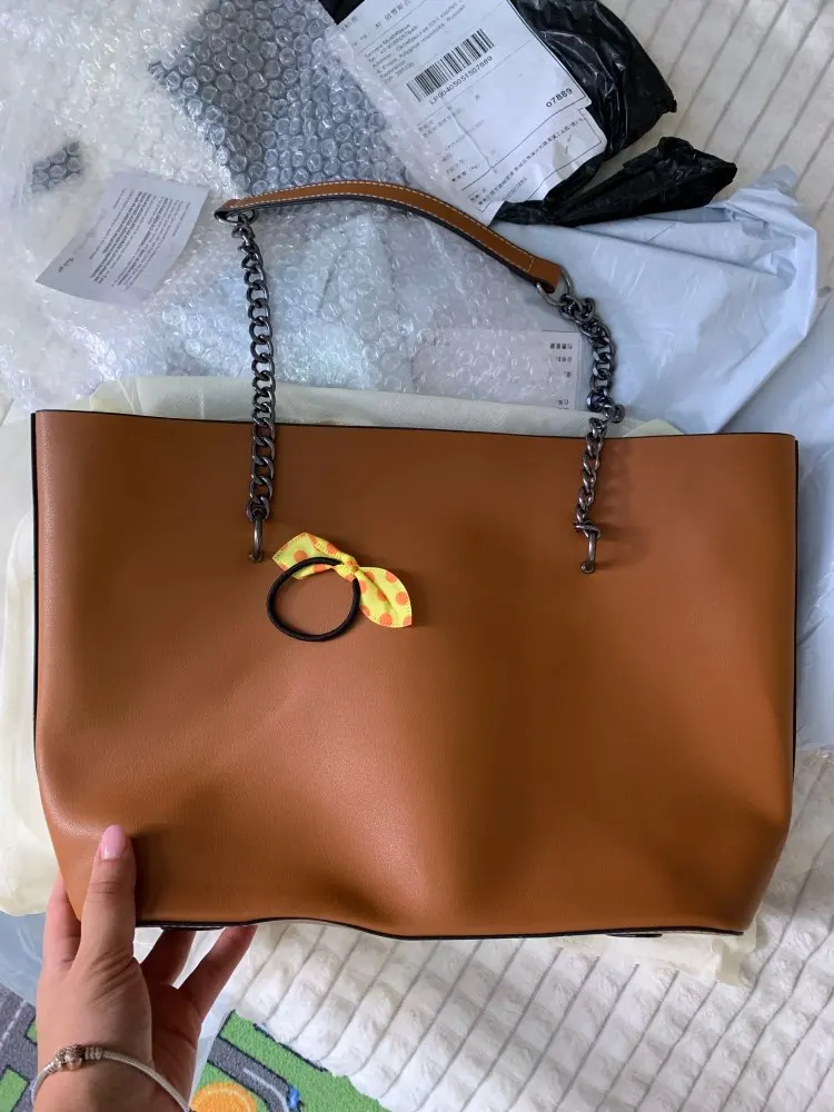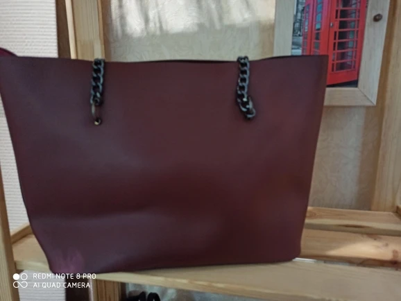 Сомневалась из-за цепей, но на плече смотрится очень симпатично, сшита хорошо, упакована отлично, я довольна. Пришла немного мятая и с небольшим запахом, но не критично. До спб после отправки дошло за 10 дней
