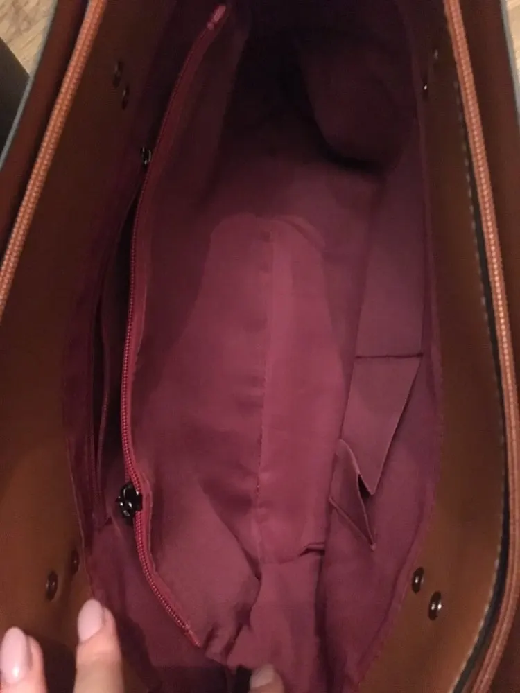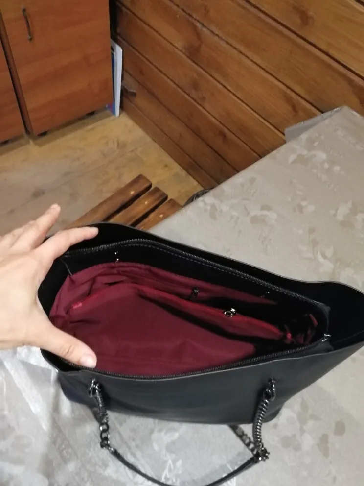 отличная вместительная сумка смотрится богато, но вот плдклад, очень дешевый, думаю не очень долго прослужит