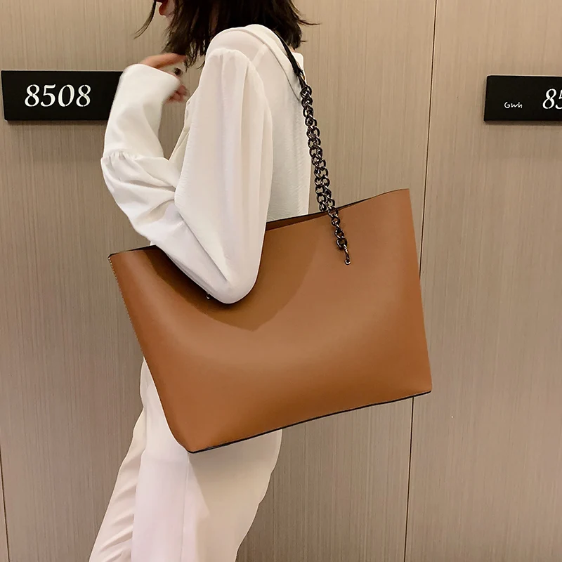 Повседневные сумки, женские сумки, дизайнерская Наплечная Сумка с цепочкой, кожаная женская сумка, большая емкость, большая сумка