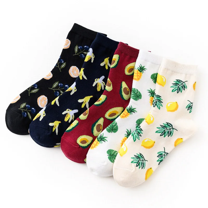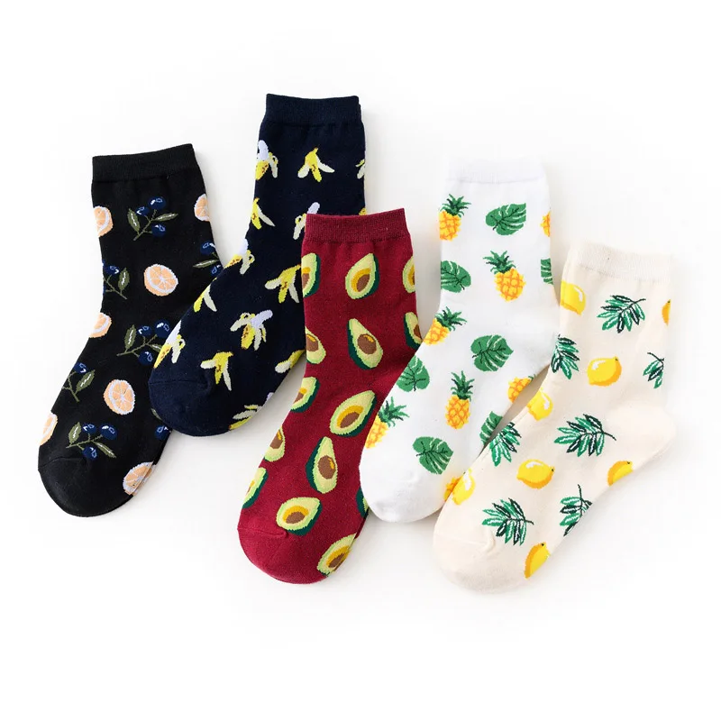 Харадзюку милые бананавокадоананас новинка носки для женщин Kawaii животных фрукты носки растения Смешные Calcetines Mujer