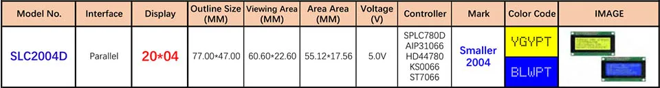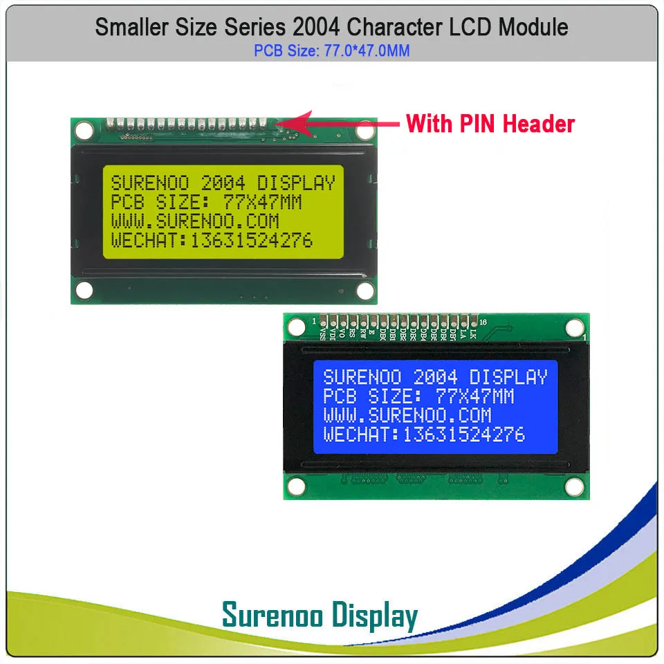 Маленький размер 77,0*47,0 мм 204 20X4 2004 символьный ЖК-модуль экран LCM синий желтый зеленый светодиодный Ной подсветкой