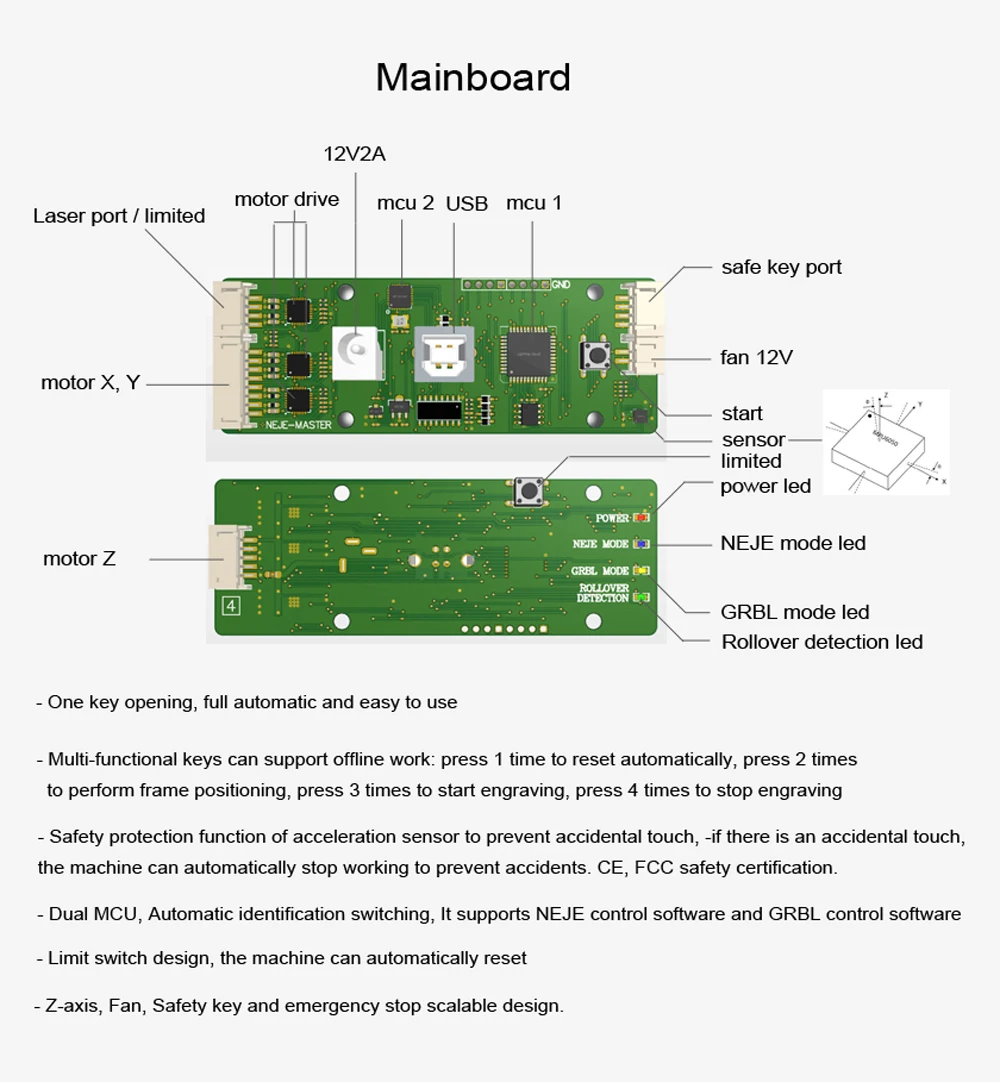 1. Встроенный датчик защиты: Daul MCU: один MCU для контроллера Suport NEJE (Windows и MAC),