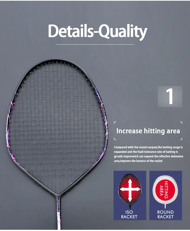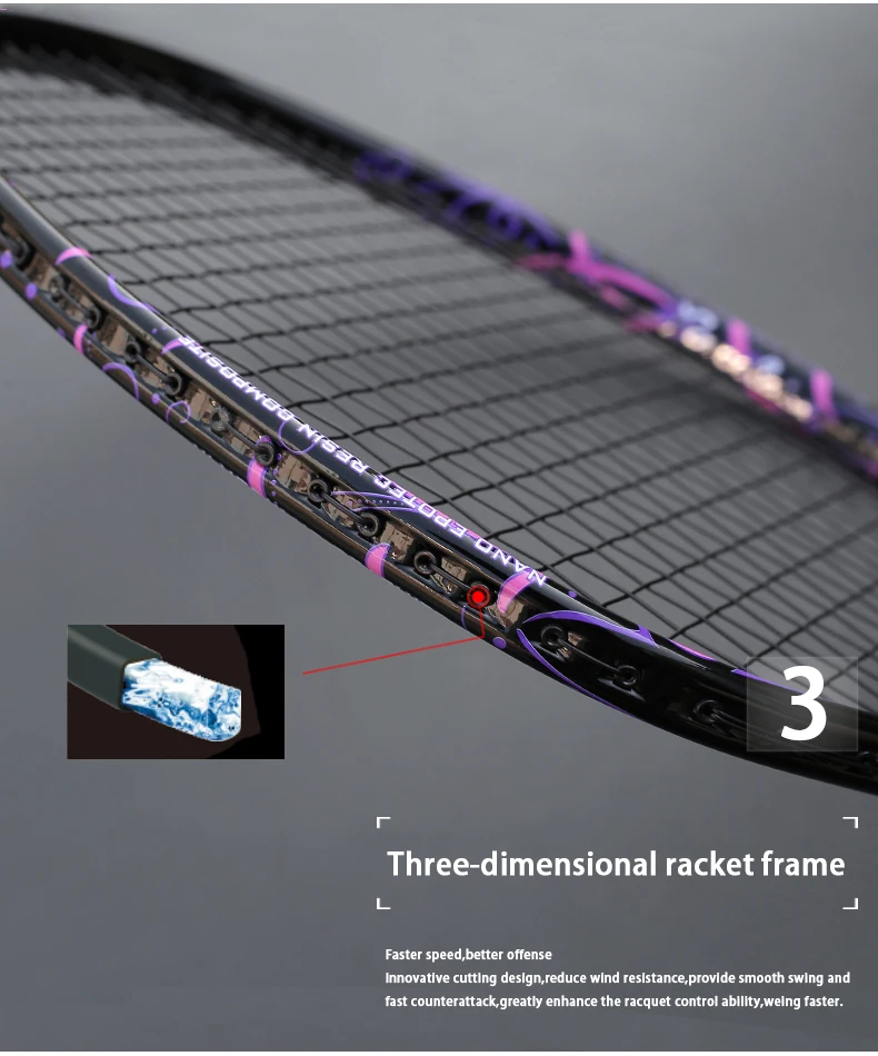 Углеродное волокно-он ракетка более легкая, но более сильная, поэтому напряжение может достигать 30 фунтов, подходит для начинающих и профессионального игрока;