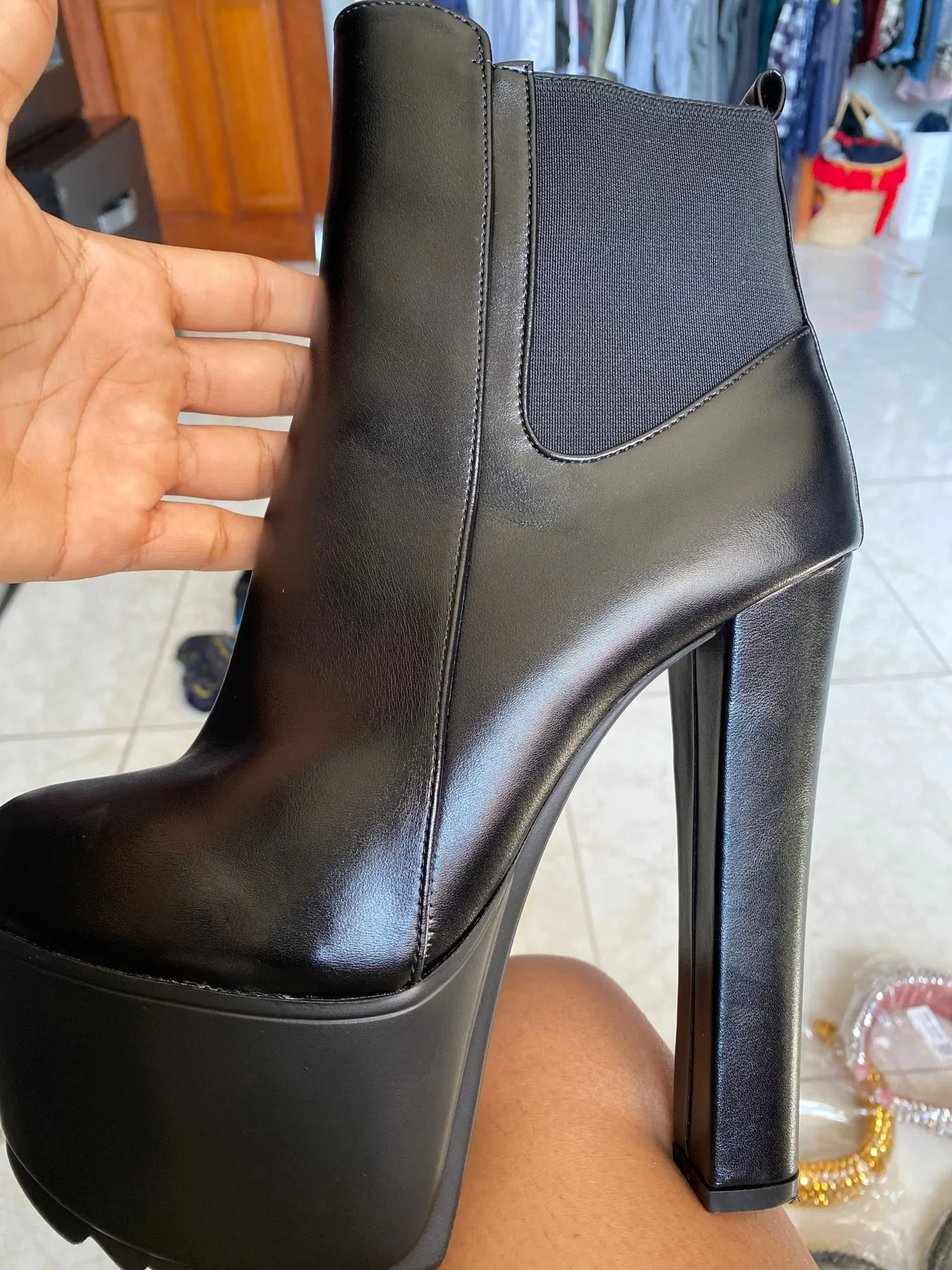 Как на фото, очень высокий каблук около 16 см