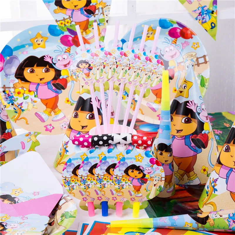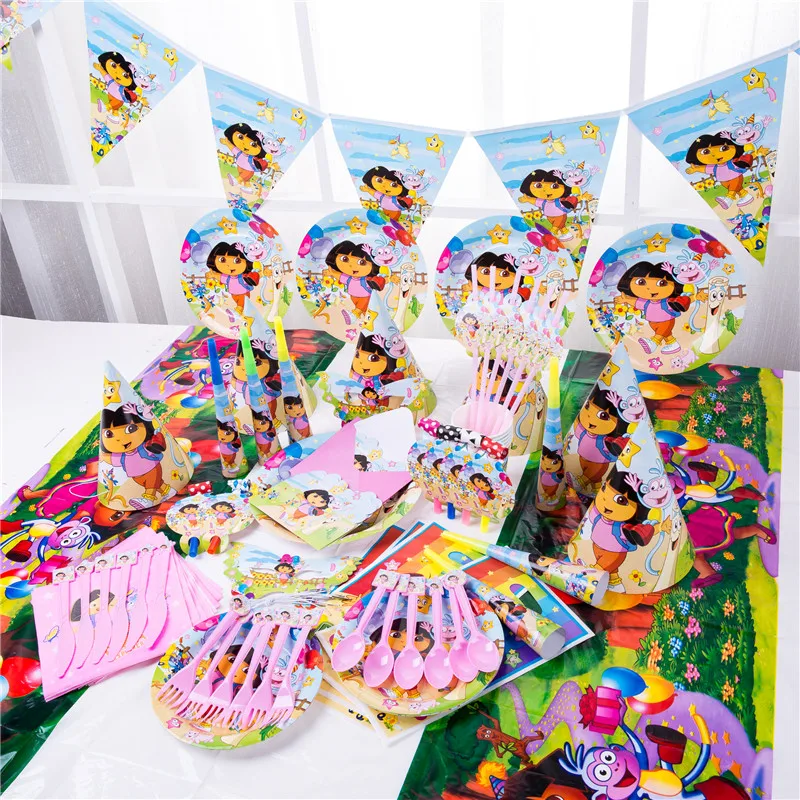 Мультяшная тема Дора воздушные шары принадлежности для вечерние бумажная тарелка салфетка маска скатерть для детей день рождения одноразовая посуда деко для будущей мамы