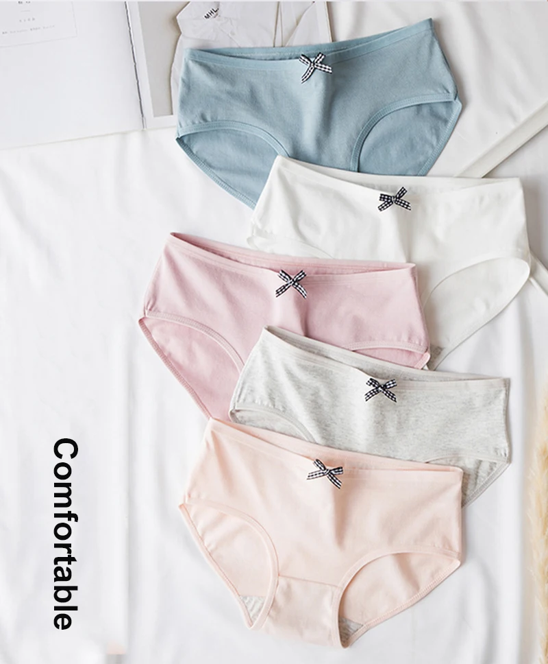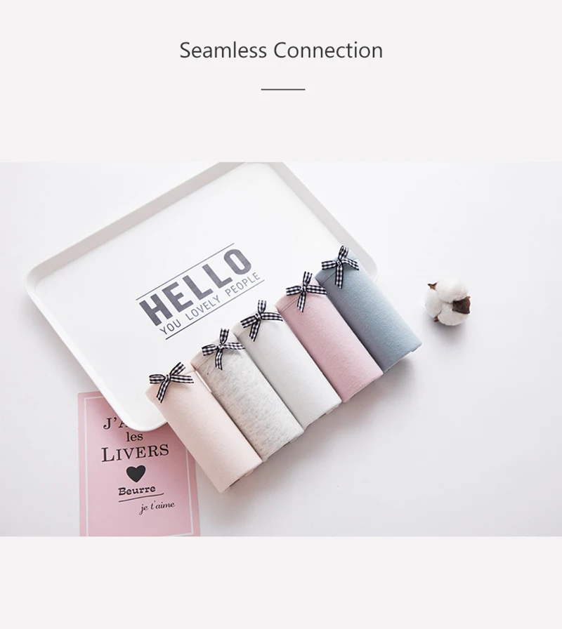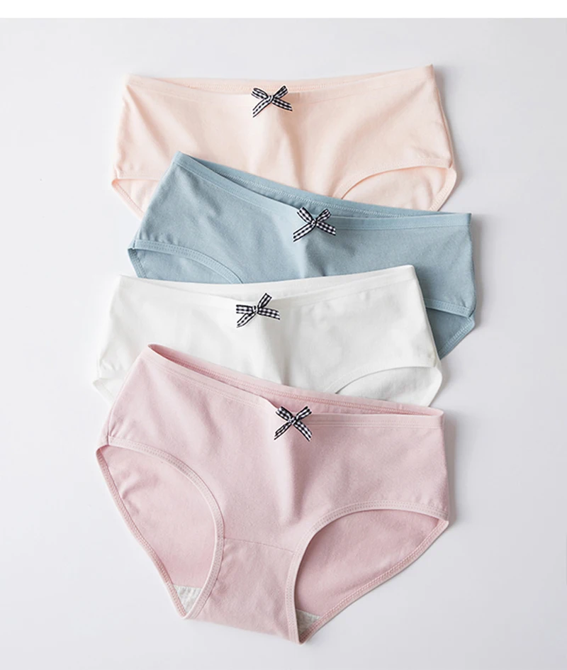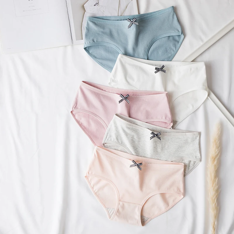 Женские трусики из хлопка, модные однотонные дышащие трусы с бантом, милое летнее нижнее белье со средней посадкой, 2019