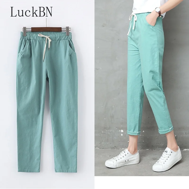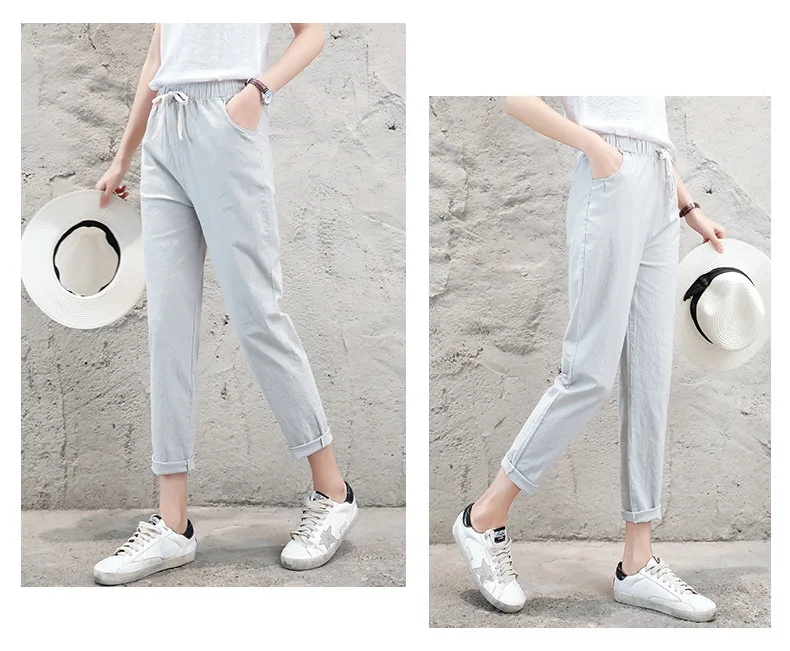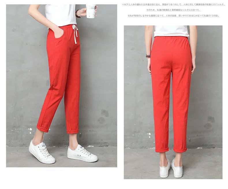 Брюки женские из хлопка и льна, свободные, ярких цветов, до щиколотки, на осень