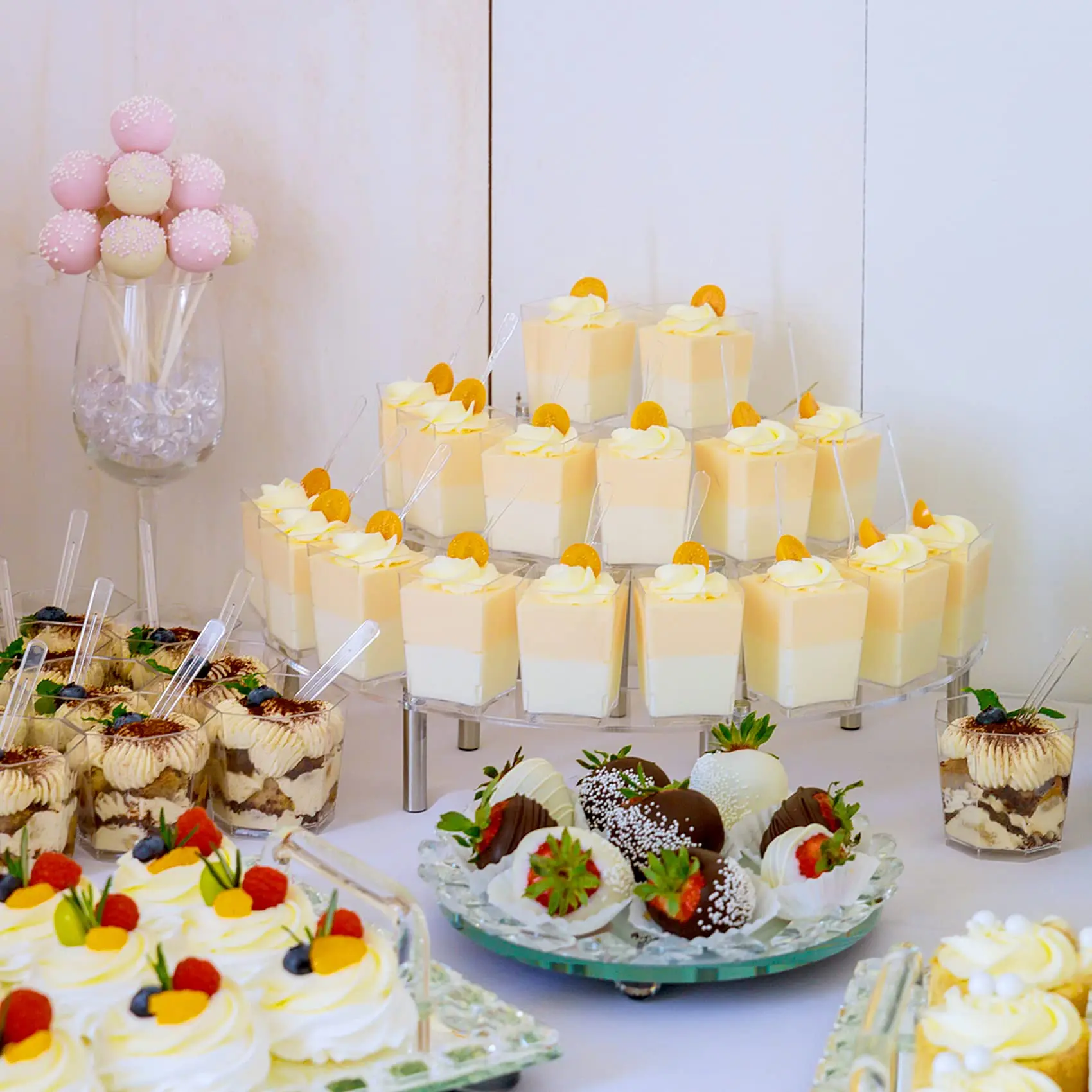 Это отлично подходит для дней рождения, детских или свадебных ливней, свадеб или любых других вечерние мероприятия, которые вы проводите дома или в другом месте. Продемонстрируйте свои Многослойные десерты, Парфе, муссы, джелло-кадры, пудинг, закуски, фруктовые салаты, закуски и многое другое.