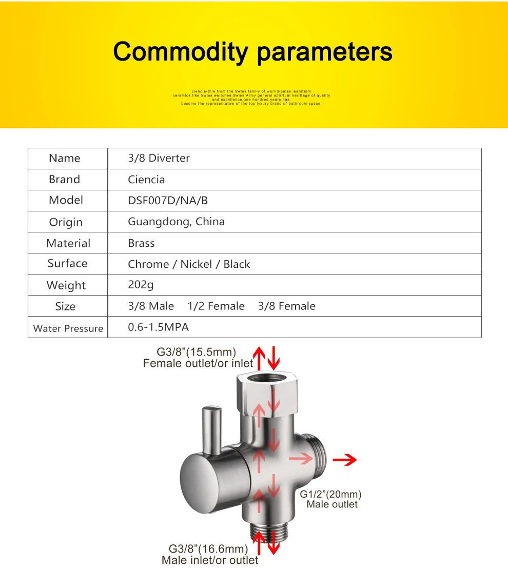 Бесплатная доставка, 3-ходовой отводящий клапан, латунный запорный клапан 38 дюйма-1217 T, адаптер для линии водопроводной линии туалета
