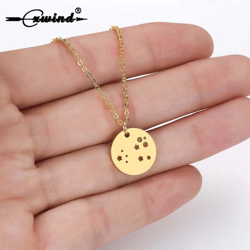 Cxwind модные ювелирные изделия со звездами круглый диск ожерелье s для женщин девочек из нержавеющей стали милый кулон для Животного Ожерелье Детские аксессуары
