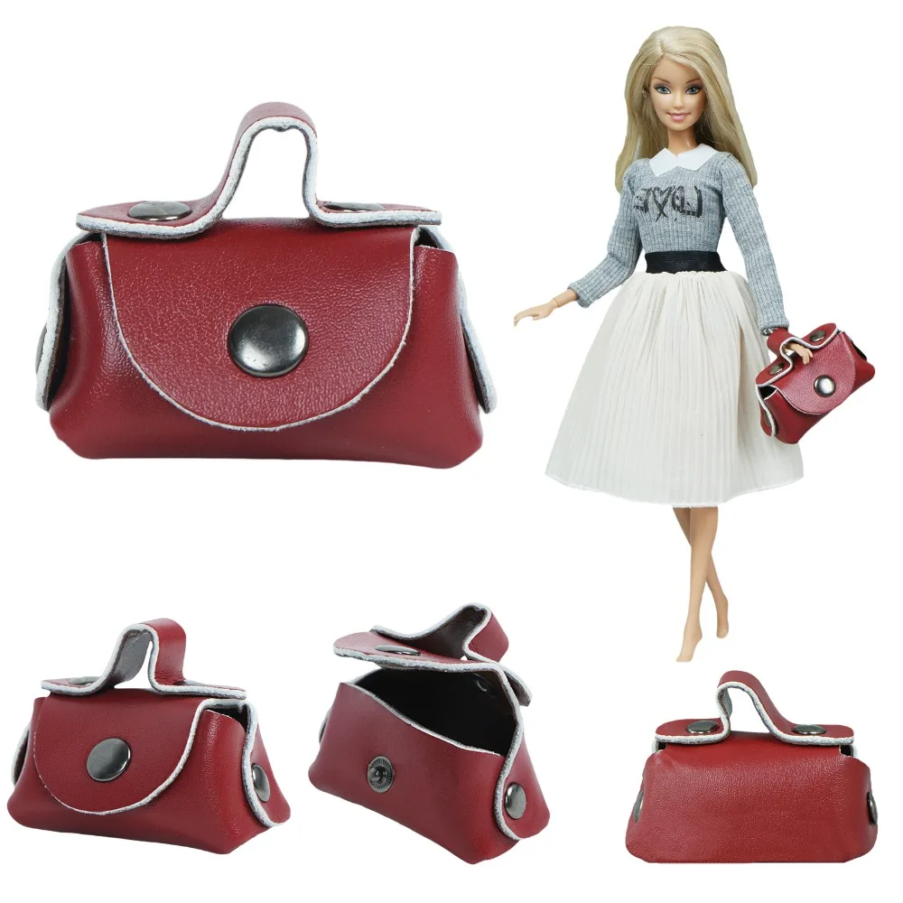 Оптовая продажа, 10 шт., винно-красная кожаная сумка для кукол, модная сумка для макияжа, сумка для покупок, аксессуары, Одежда для куклы Барби, детская игрушка сделай сам