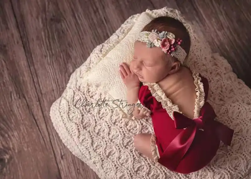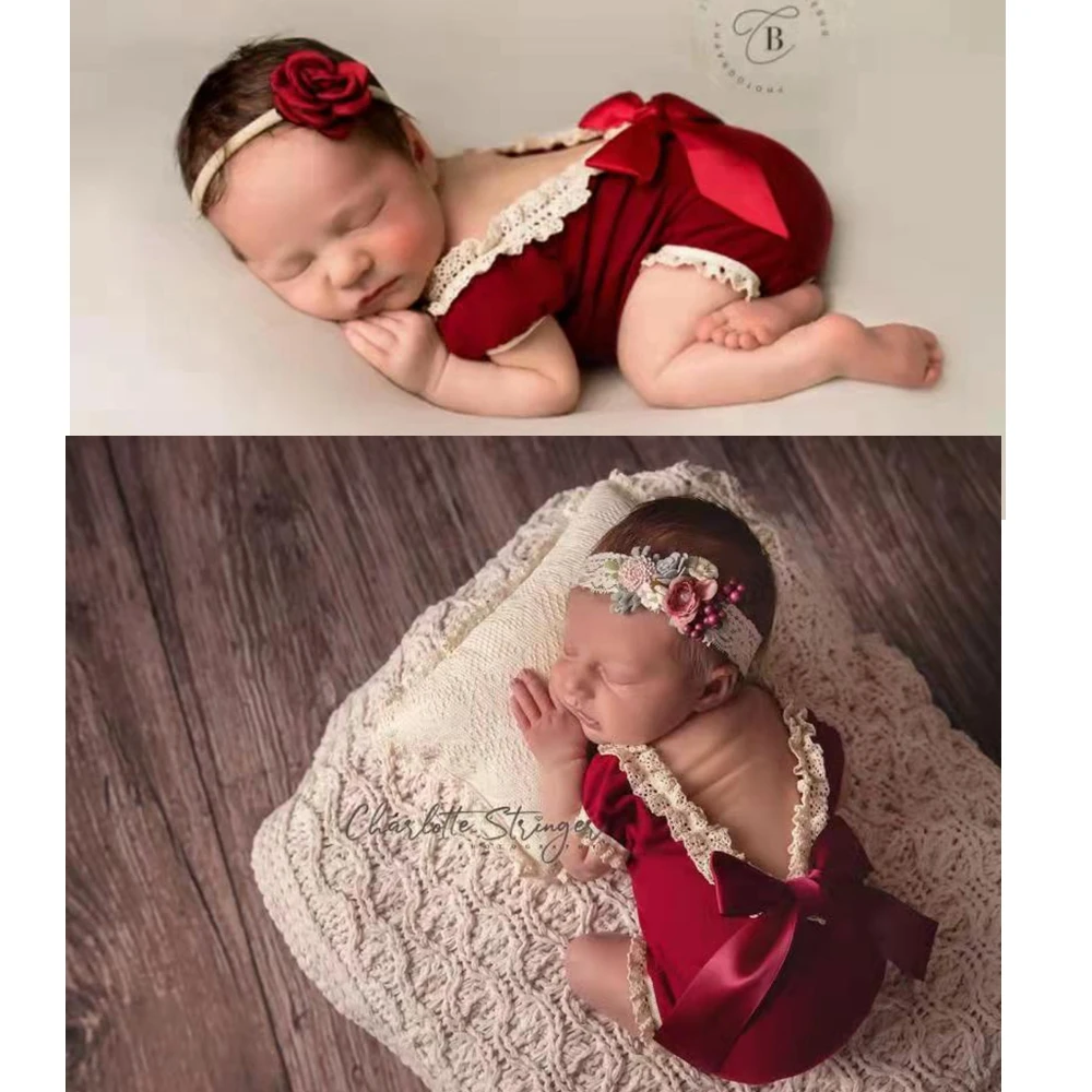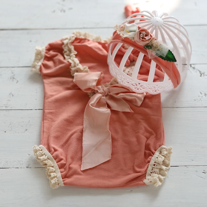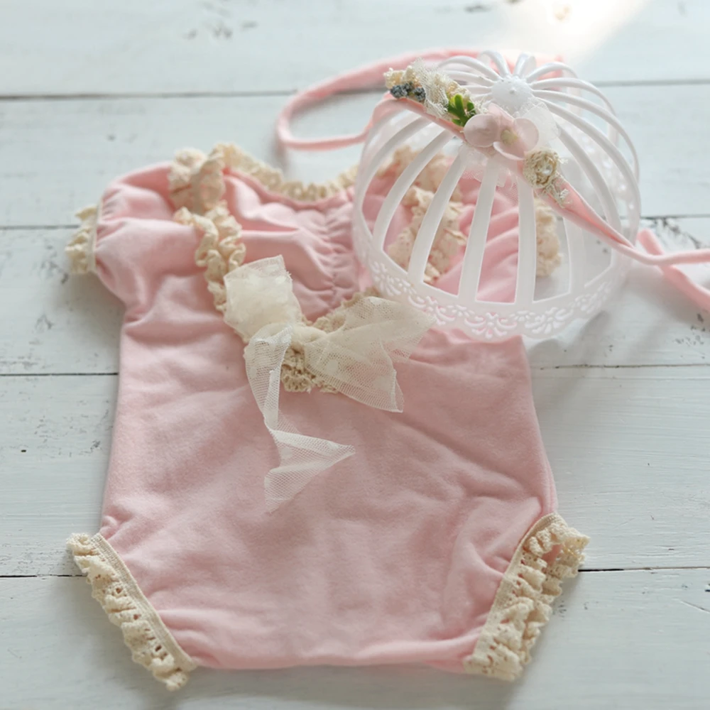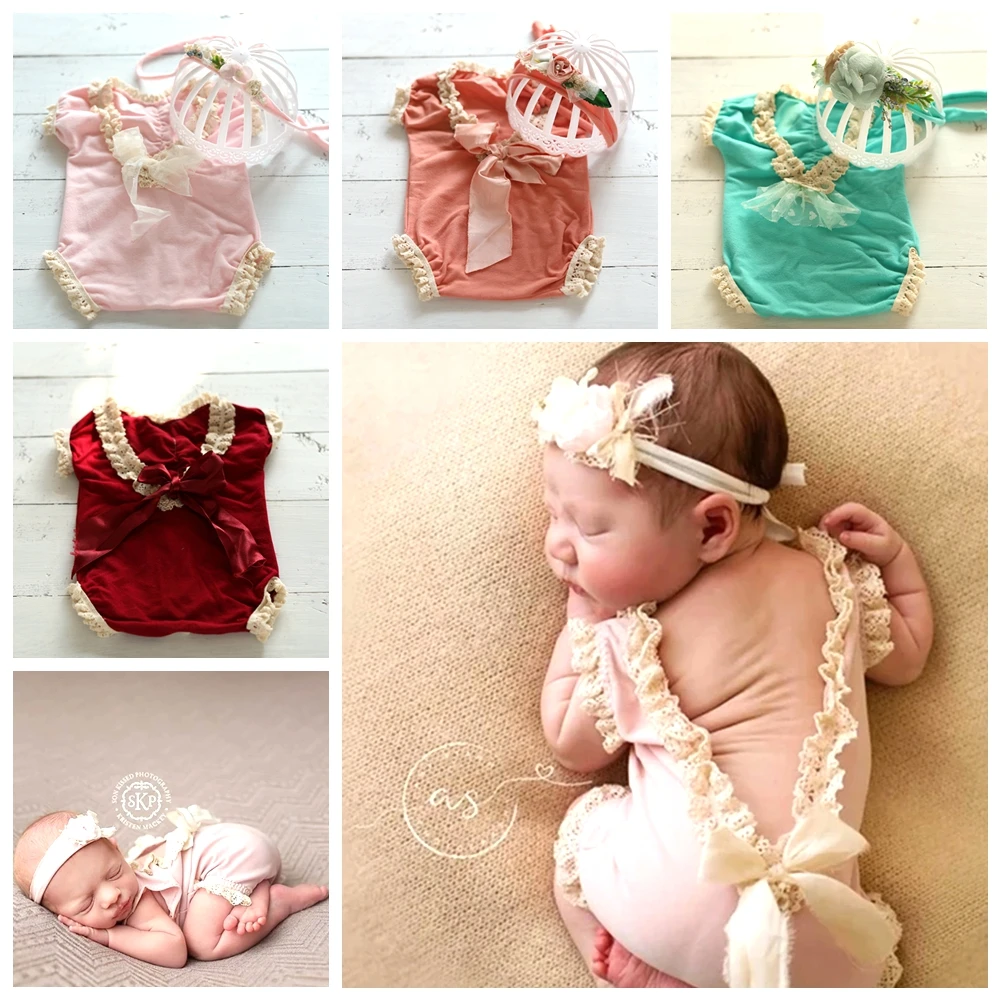 Летняя одежда для новорожденных девочек реквизит для детской фотографии эластичный кружевной комбинезон и повязка на голову аксессуары для фотостудии для съемки