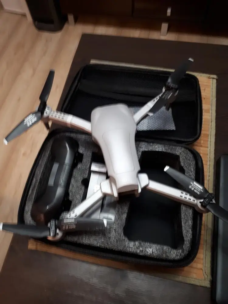 И так по порядку. Доставка 4 дня со склада в Польше. Я просто был в шоке как это быстро. Дрон пришёл в коробке + в кейсе. Комплект дрон + пульт + акб (у меня 2шт)+ Отвёртка + инструкция + Зарядны шнур (использовать только его в нем стоит преобразователь на 4.2в) + 4 лопасти 2+2. Что сразу советую брать пару комплектов лопастей. Летят как спички. Управление не резистивное. То есть плавность не добиться. Дрон управляется рывками. Акб пришли разряжены почти в ноль. Что есть не хорошо. Акб 7.4в 2000мА. Сам дрон простой в настройке пластик крепкий. Самое слабое звено лопасти. Камера очень не плохого качества. Поворачивается увы только по вертикали и только вручную (со смартфон я не нашёл где управление камерой). Шумит сильно летает быстро. В общем отличная игрушка за свои деньги. Дальность в приложении 300м хотя заявлено 500. А так 5 балов)