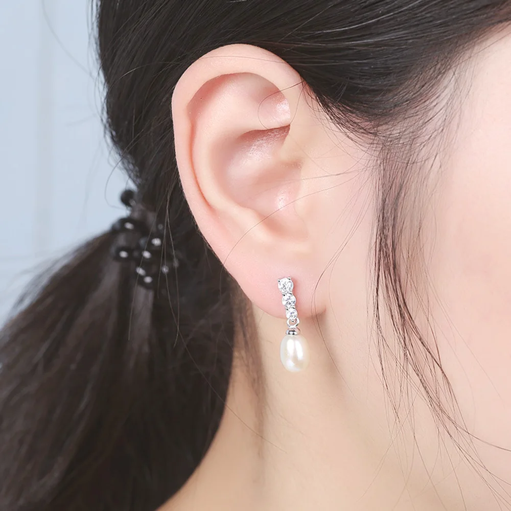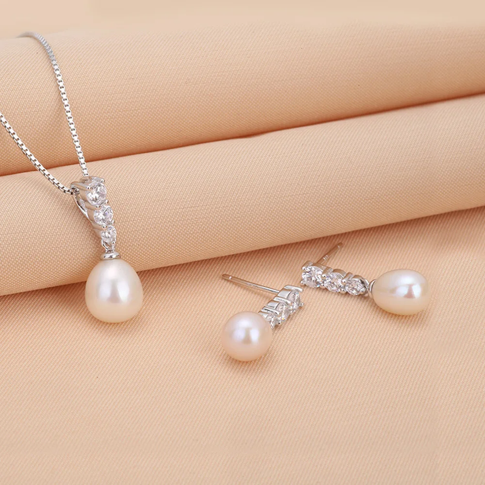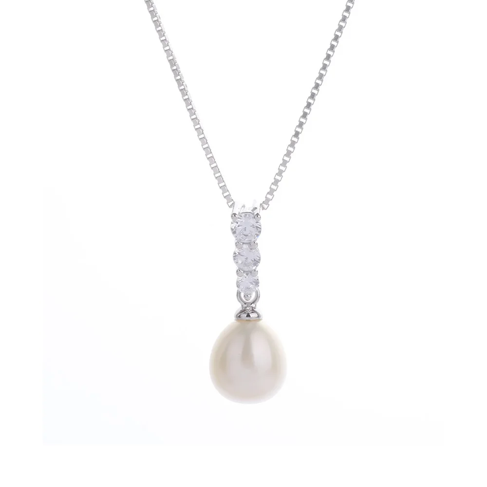 MADALENA SARARA AAAA кубическая инкрустация цирконием 8 мм пресноводный жемчуг Женское Ожерелье ювелирный набор S925 подвеска цепочка