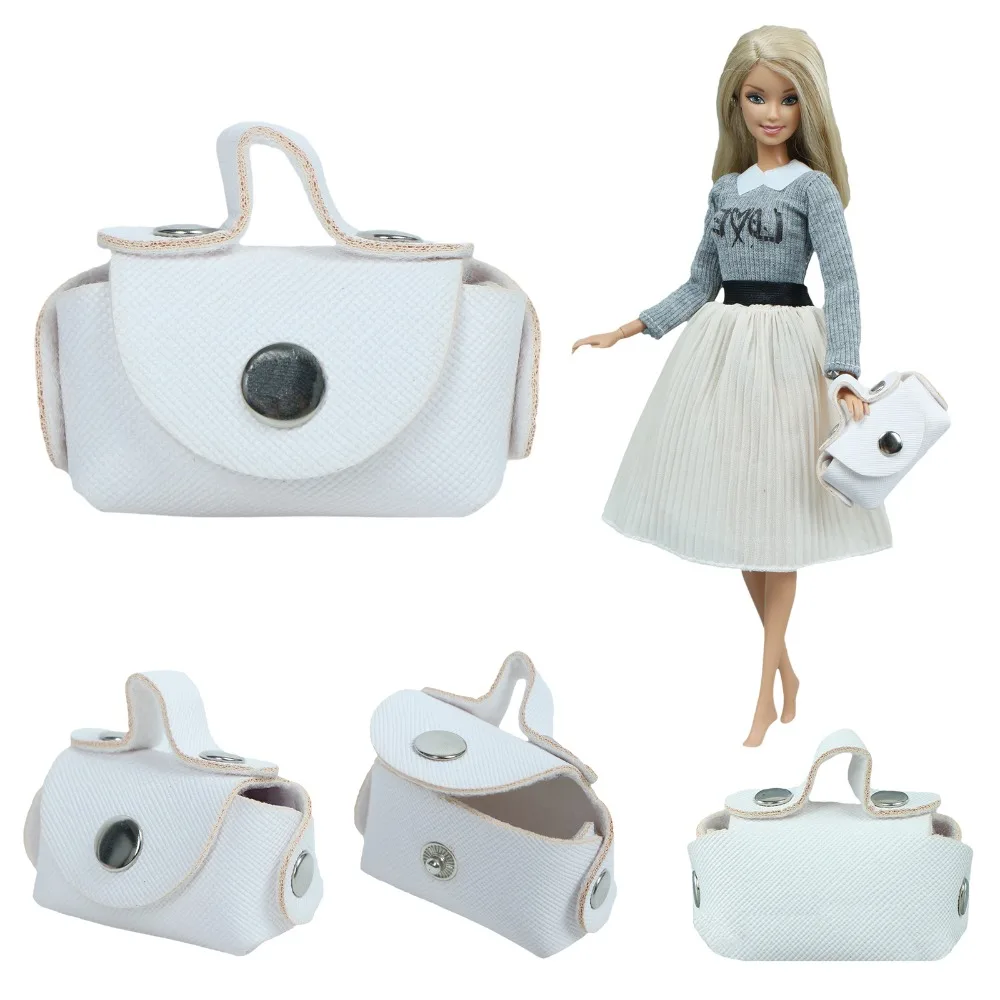 Оптовая продажа, 10 шт., белая кожаная сумка, сумка для макияжа, модная сумка для покупок, платье, аксессуары, Одежда для куклы Барби, Игрушки для маленьких девочек