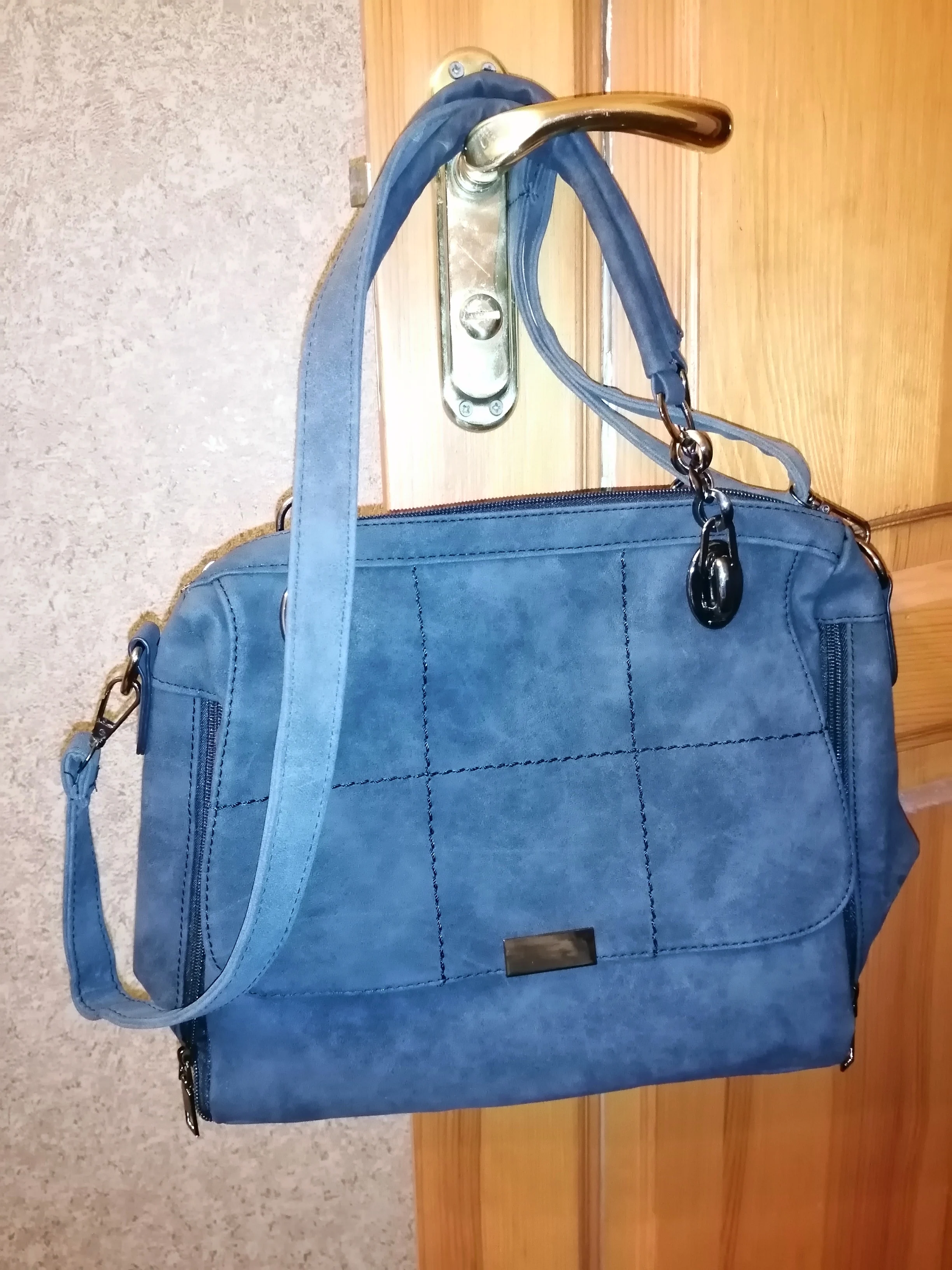 Сначала минусы: внутри сумки нет кармашка посередине, мне его не хватает. Сама сумка странно пахнет, думаю, запах скоро выветрится. То, что на фото выглядит как карман внахлест на самом деле обманка, что удивило меня. Внутри ткань дешевая, шуршащая. Теперь плюсы: сумка пошита хорошо, швы ровные, ручки крепкие, молнии хорошие. Материал очень приятный, цвет красивый, не совсем черный, скорее, серый. По бокам есть молнии, чтобы сделать сумку вместительнее, когда это понадобится. С обратной стороны есть кармашек, и внутри тоже два маленьких. Длинный ремешок можно отрегулировать по длинне. Доставка быстрая, менее месяца, трек отслеживался, сумка приехала на почту в пакете, не помялась и не порвалась. С продавцом не общалась, он положил мне два подарочка и открытку, за что ему большое спасибо. Сумку к покупке рекомендую, плюсы перевешивают минусы. Если фото не прикрепятся, дополню отзыв