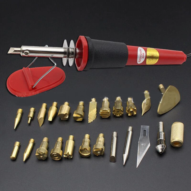 Набор инструментов для пирографии, 26 шт., паяльный инструмент 220-240 в 30 Вт для тиснения и гравировки кожи