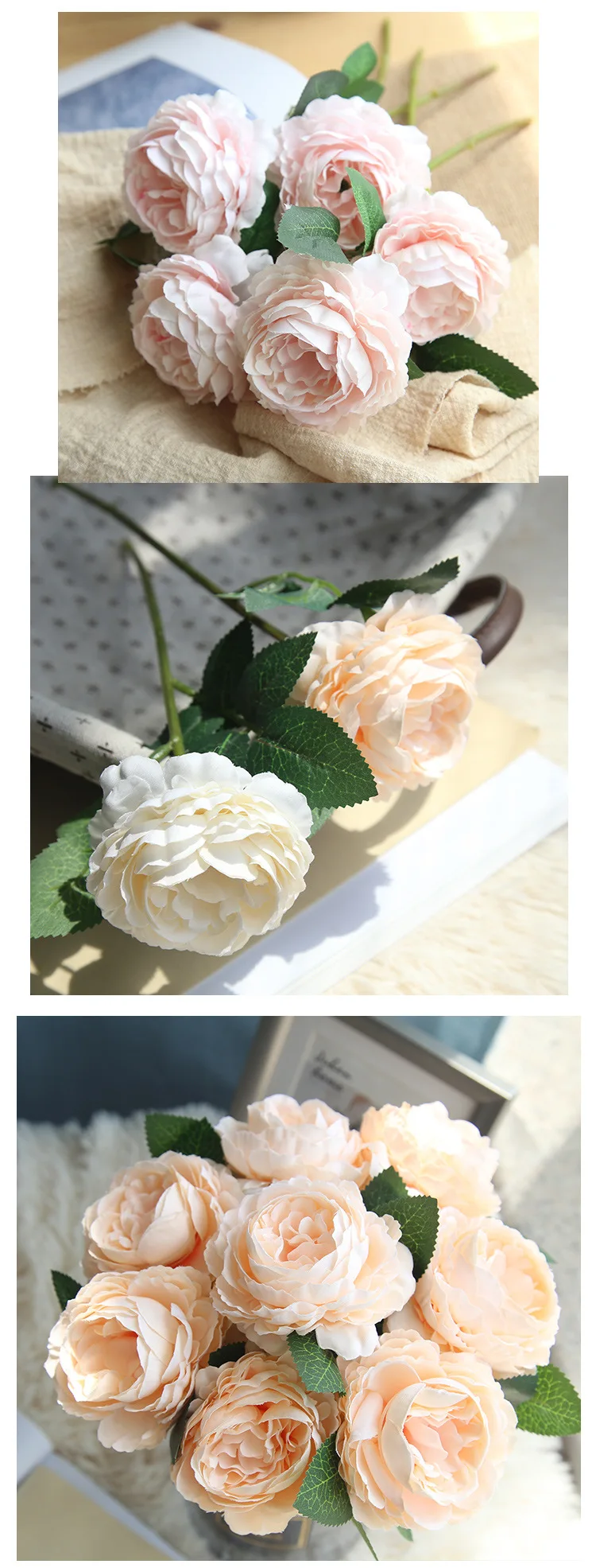Искусственные цветы, роза, розовый Шелковый букет, пион, свадебное ...