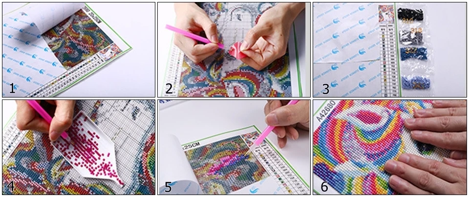1. Раскройте небольшую часть двусторонней ленты 2. Точечное сверло, обернутое клеем 3. Найти соответствующий алмаз по symbol у 4. Налейте бриллиант в пластину и используйте ручку для поглощения 5. Найдите соответствующий символ точечного сверла 6. Используйте книжку для нажатия после вставки