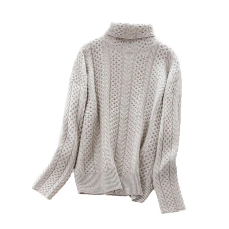 Свитер женский кашемировый, с высоким воротом, плотный, свободный