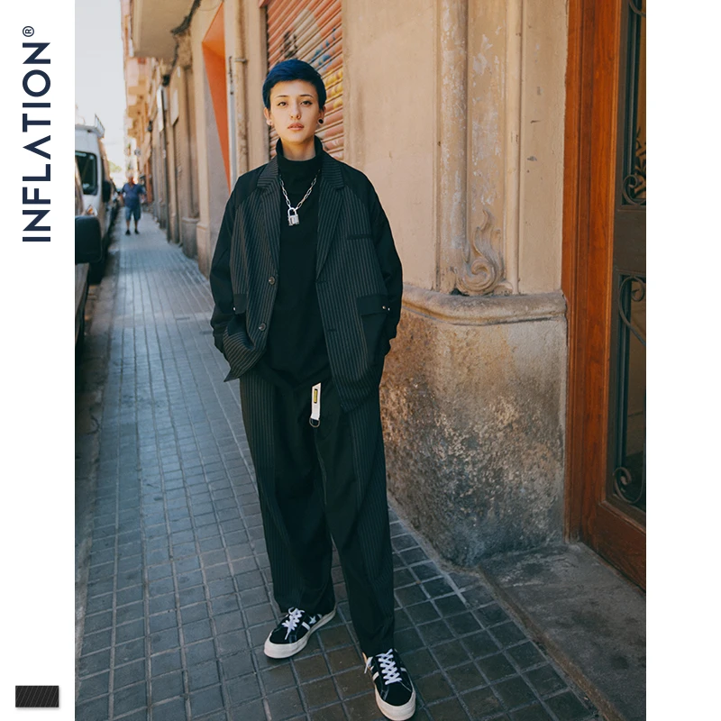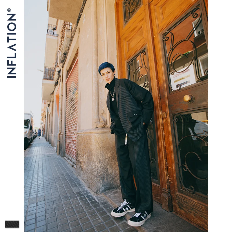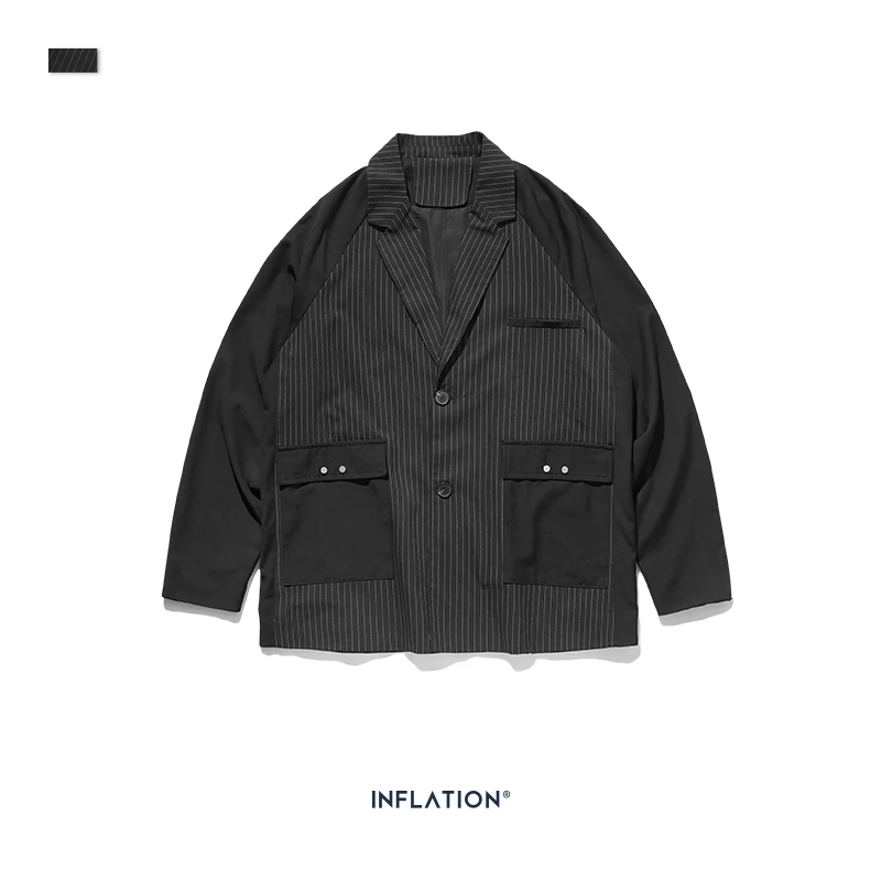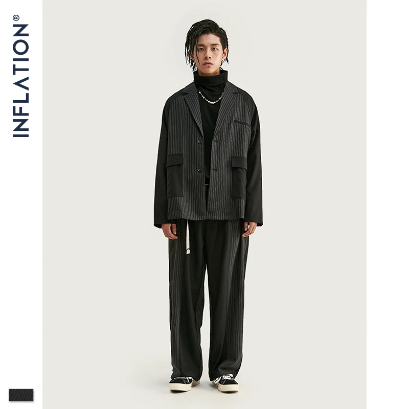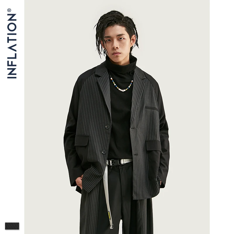 INFLATION мужской лоскутный Блейзер, свободный, модный, уличный, Повседневный, черный