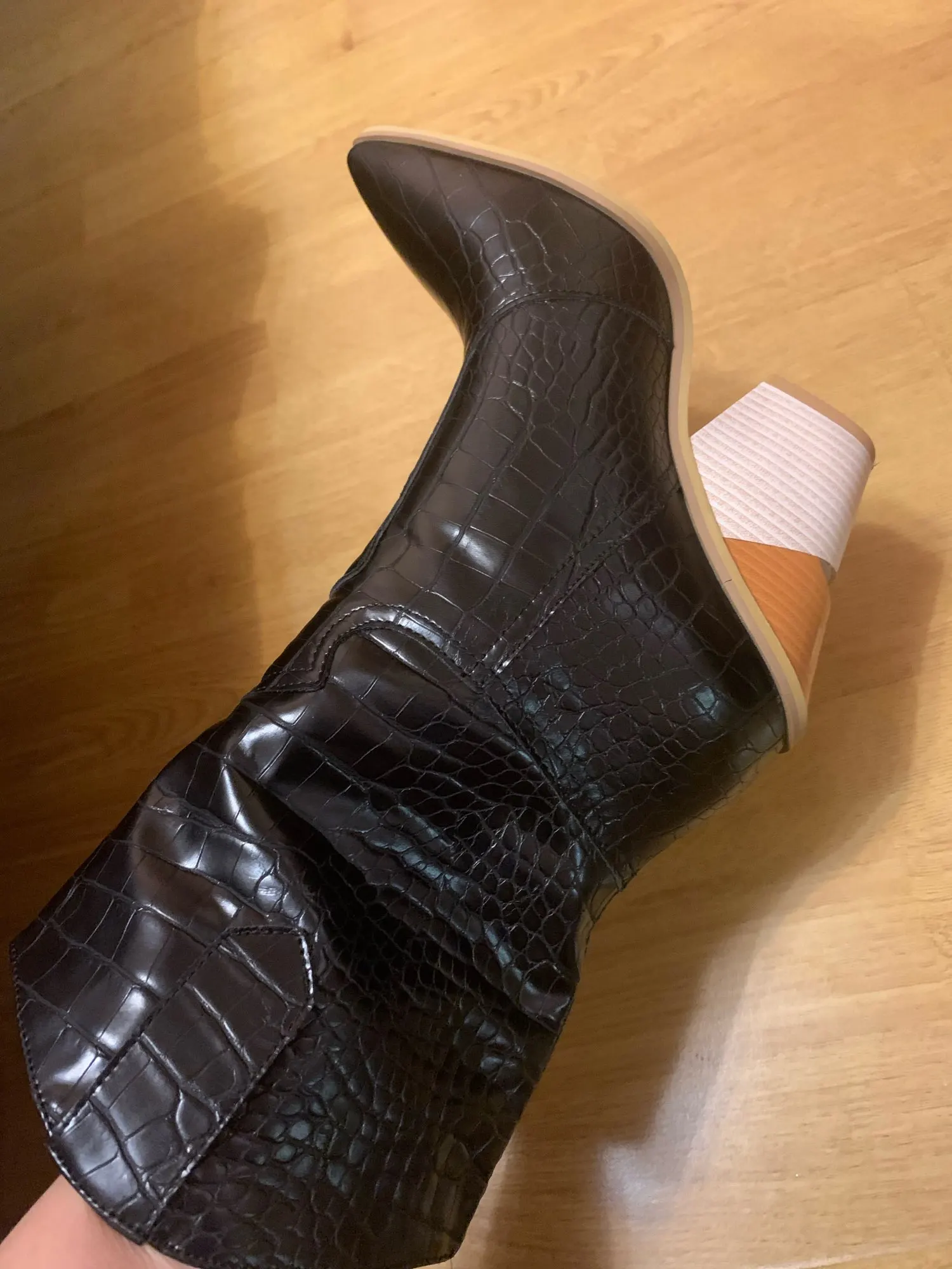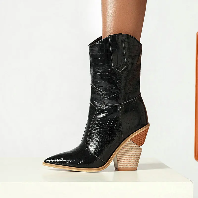 Женские ботинки из искусственной кожи, зимние ковбойские ботинки на танкетке, джинсовые ботинки, Осень-зима 2021