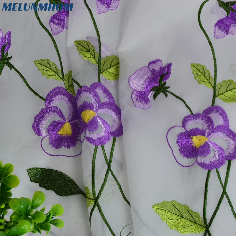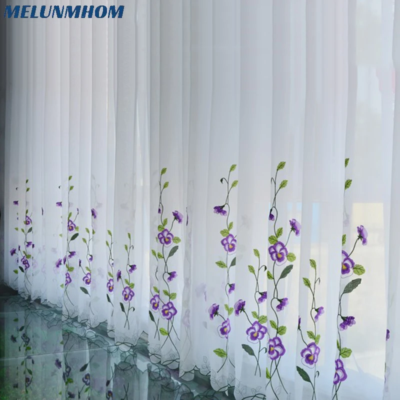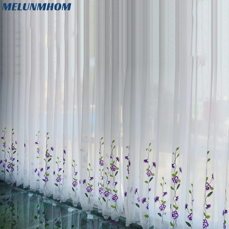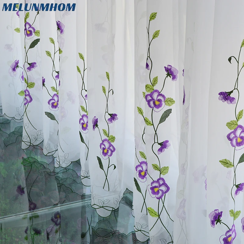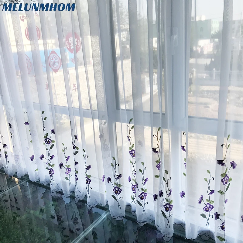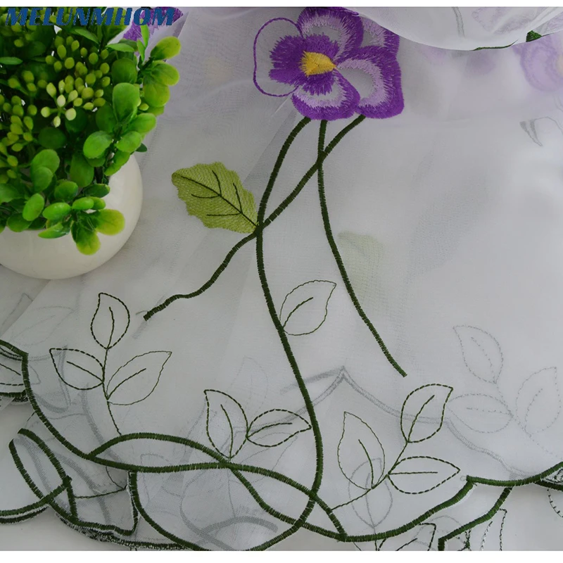 Пасторальные белые тюлевые занавески с вышивкой и фиолетовыми цветами для спальни, гостиной, занавески для окна, украшения для кухни