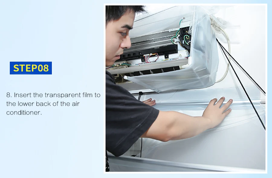 7. Не забудьте оставить зазор, чтобы вставить прозрачную пленку в заднюю часть кондиционера.