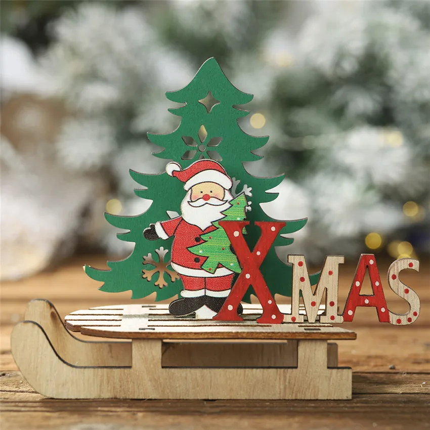 Рождественский орнамент деревянные DIY сани орнаменты инновационные Мультяшные сани настольные украшения Рождественские украшения для дома