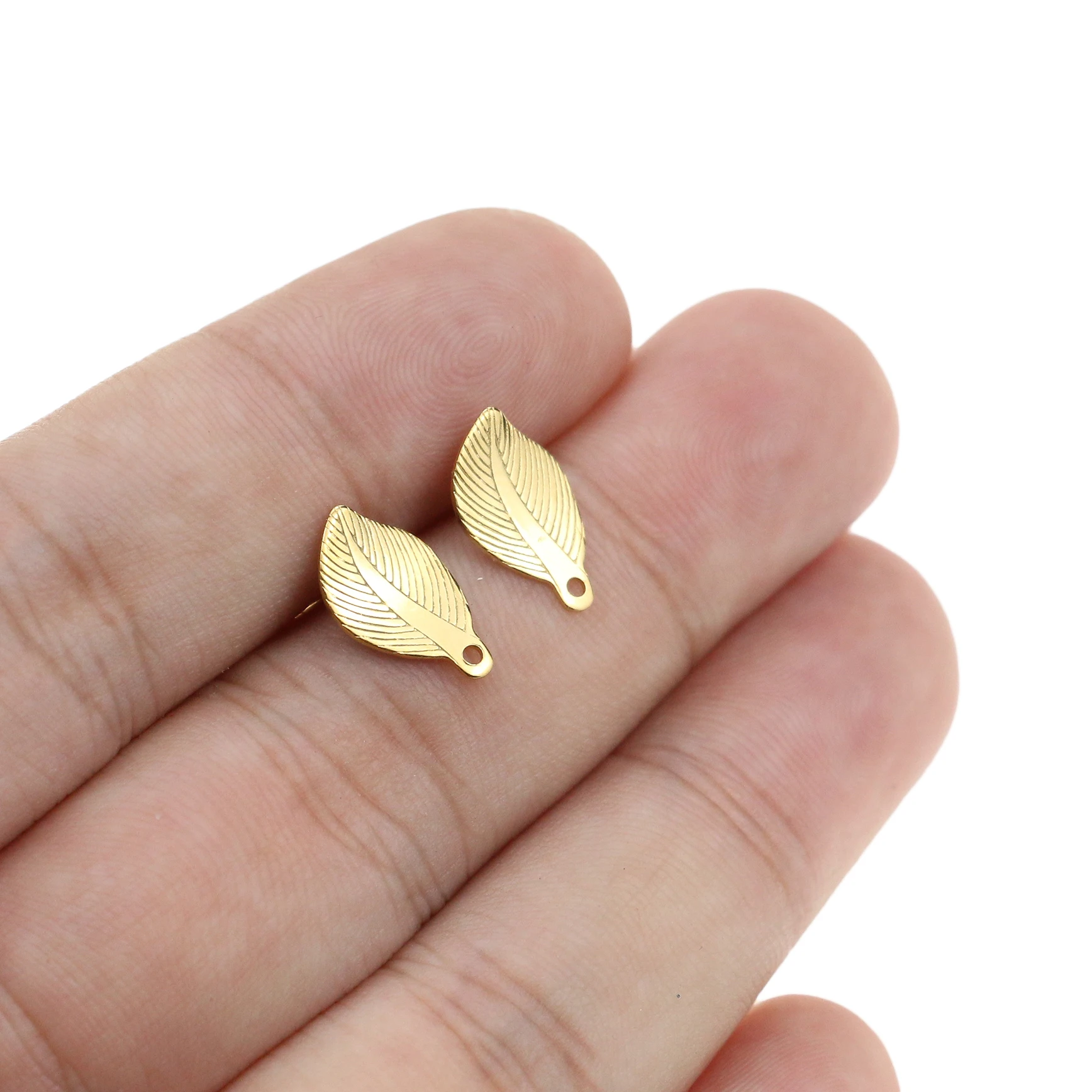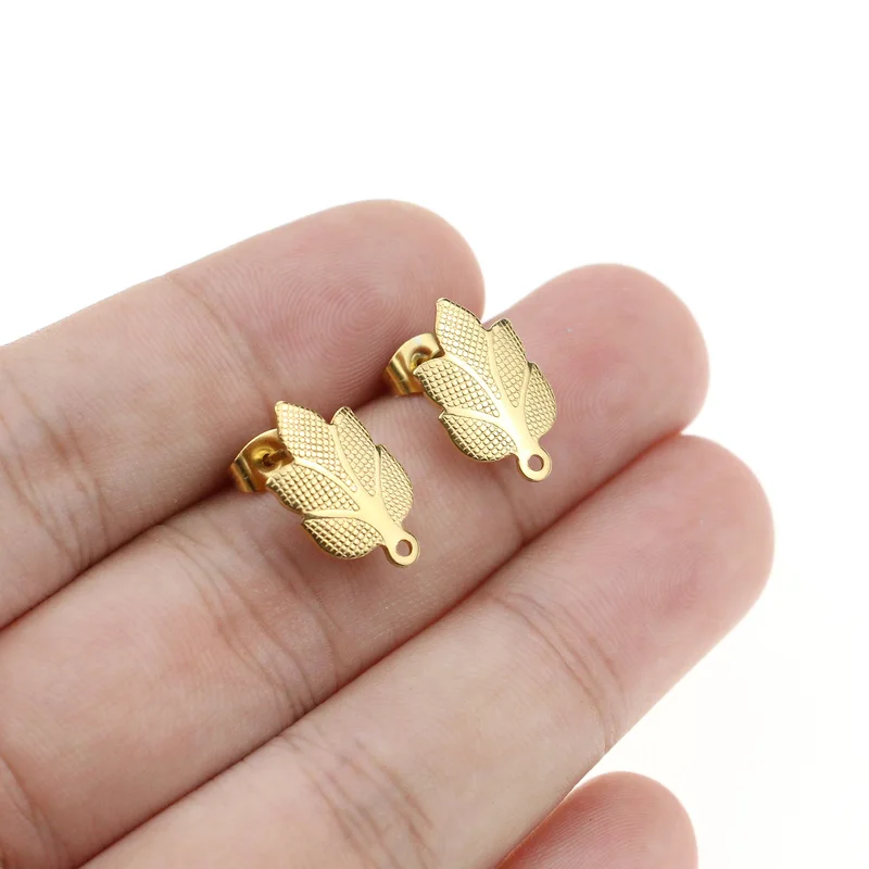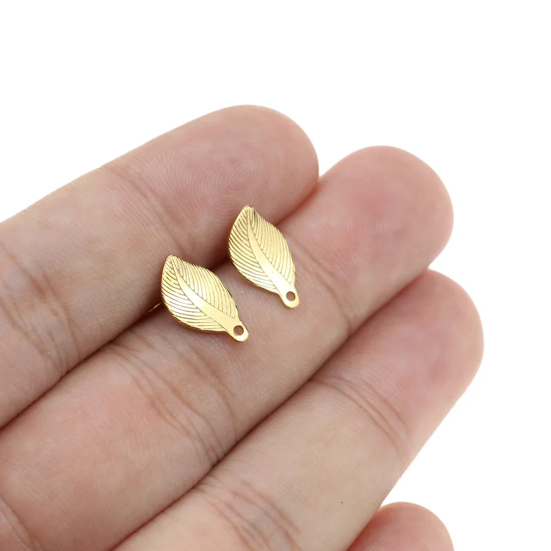 10 шт.лот, новые серьги-гвоздики из нержавеющей стали в форме листа, базовые детали для сережек-гвоздиков, принадлежности для самостоятельного изготовления ювелирных украшений