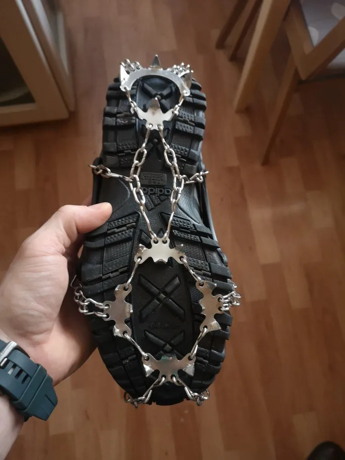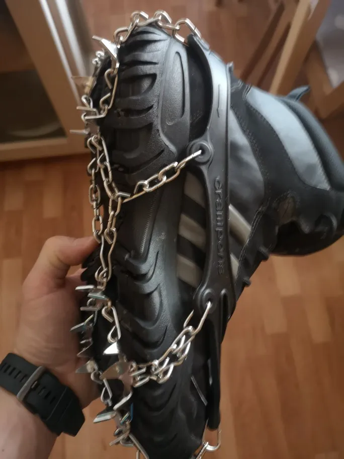 Шипы качественные. вгрызаются в плотный снег отлично. На тротуарной плитке при весе меня 75 кг. не выгибаются шипы. Силиконовый обод очень мягкий.
