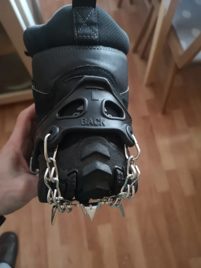 perfetto,come da descrizione,facile da indossare,va provato ma sembra adatto ad escursioni su terreni con ghiaccio ,fango o neve,non sono da scalata, arrivati in anticipo