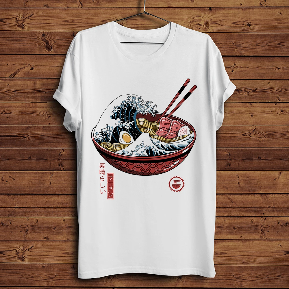 Мужская футболка в японском винтажном стиле Great Ramen Wave, летняя забавная белая Повседневная футболка, классная уличная футболка унисекс
