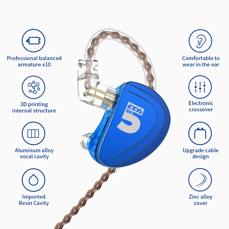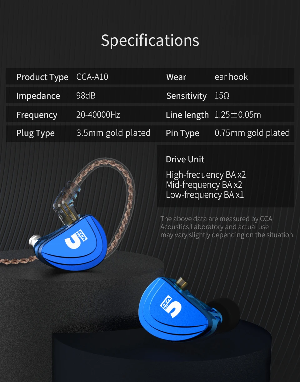 CCA A10 5 сбалансированные арматурные наушники-вкладыши для водителя HIFI бас наушники с 2pin кабелем AZ09 ZSN PRO ZSN10 KZ AS10 KZ BA10 Оснащен потрясающей десять-блочной конфигурацией, широким звуковым полем, точным восстановлением деталей подходит для интерпретации различных типов музыки, таких как симфония, внутренняя струна, популярный вокал и т. Д. 29689 двойной Среднечастотный сбалансированный арматурный набор, вокал и музыкальные инструменты более красивы, поглощающие преимущества расплывчатости и естественности подвижного кольца в виде количества и текстуры, А среднечастотная производительность более гладкая и красивая. Фортепиано, гитара и вокал превосходны, а привычные песенки имеют новое ощущение 2 канала, 3 Частоты, профессиональная Настройка АЧХ широкая, крашение небольшое, и звуковые детали богаты. Текстура четкая и нежная, и звуковое поле позиционируется точно, не теряя ощущения обволакивания. Сменный кабель, более интересный Вставляемый кабель 0,75 мм, улучшен до Bluetooth гарнитуры, заменяя кабель, приобретайте обновляемый кабель отдельно, чтобы разблокировать еще больше новизны Спецификация: 1. Название продукта: оригинальные наушники-вкладыши CCA A10 2. Бренд: CCA 3. Модель: A10 4. Тип наушников: вкладыши 5. Сопротивление: 15Ω 6. Чувствительность наушников: 98 дБ/мВт 7. Частотный диапазон: 20-40000 Гц 8. Интерфейс: 3,5 мм позолоченный 9. Тип штекера: L изогнутый 10. Длина кабеля: 1,2 м ± 3 см 11. Цвет: синий 12. Есть ли кабель: Да 13. Интерфейс наушников: 2-контактный разъем 14. С микрофоном: опционально 15. Можно ли заменить кабель: Да 16. Блок водителя: 5 сбалансированных арматуры (5BA) блок водителя для каждой стороны