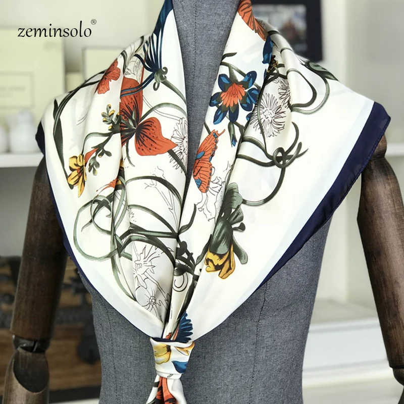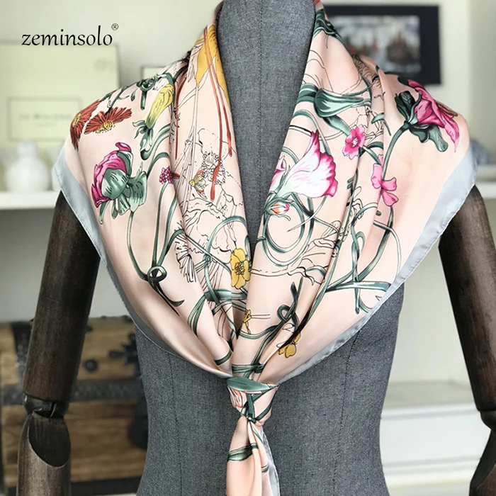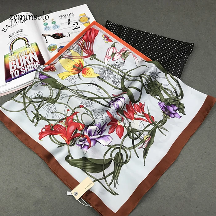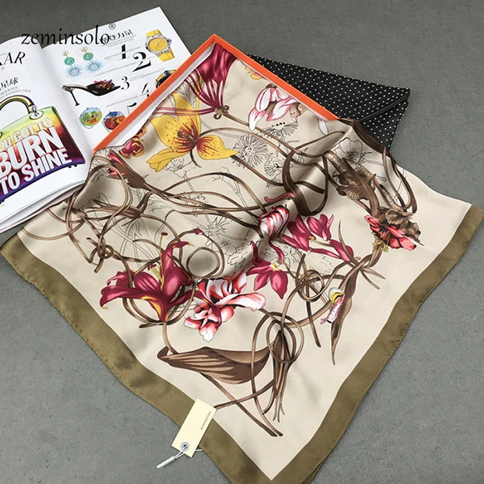 Элегантный женский шарф Deluxe Drand, с цветочным принтом, 90*90 см, квадратный шарф, модный платок
