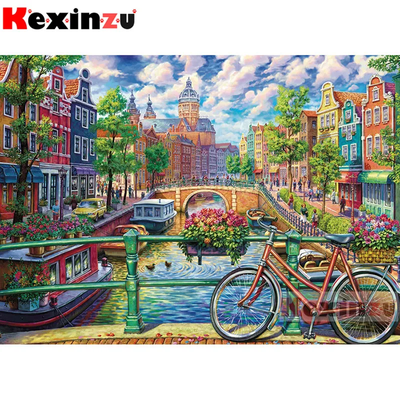 Kexinzu Новый 2019 5D DIY полный квадратныйкруглый Алмаз Картина "городской велосипед" 3D вышивка вышитая крестом ручная работа домашний декор X7589