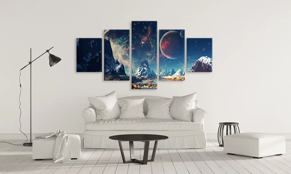Домашний декор, холст, HD принты, настенные картины, 5 шт., набор для рисования гор и космоса, планет, снег, озеро, галактика, плакат, рамка