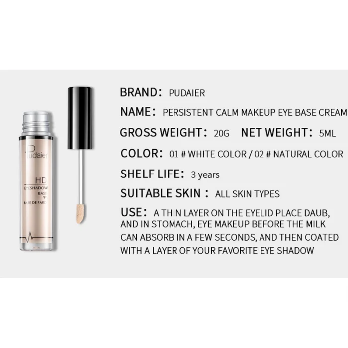 Особенности:1. Эта шелковистая,Питательный макияж для глаз выглядит как продукт по уходу за кожей, но он может обеспечить износ, максимизируя2. Улучшите макияж с помощью этого праймера теней для век,Блокировка теней для век позволяет достичь 12 времени против морщин, обеспечивая гладкую текстуру для нанесения макияжа.3. Легко скользит под светильник,Легкая текстура, которая помогает выровнять тон кожи, усиливает тени для век и добивается великолепного возвращения в каждый хит.4. Поглощает масло, чтобы противостоять вдавливанию,Создает мягкий и комфортный идеальный эффект, заставляя людей чувствовать себя целыми днями.Вес нетто: 5 мл