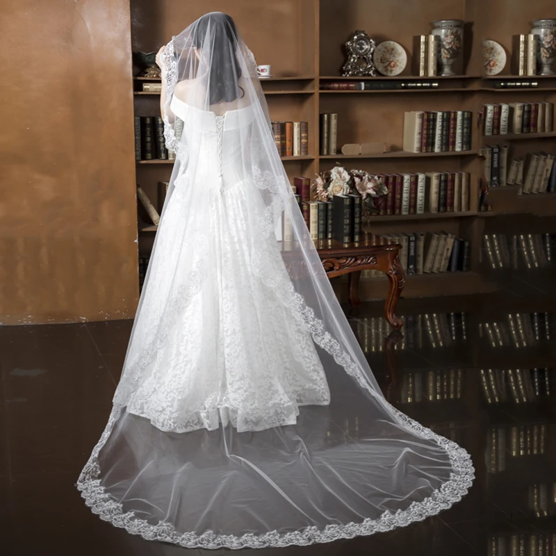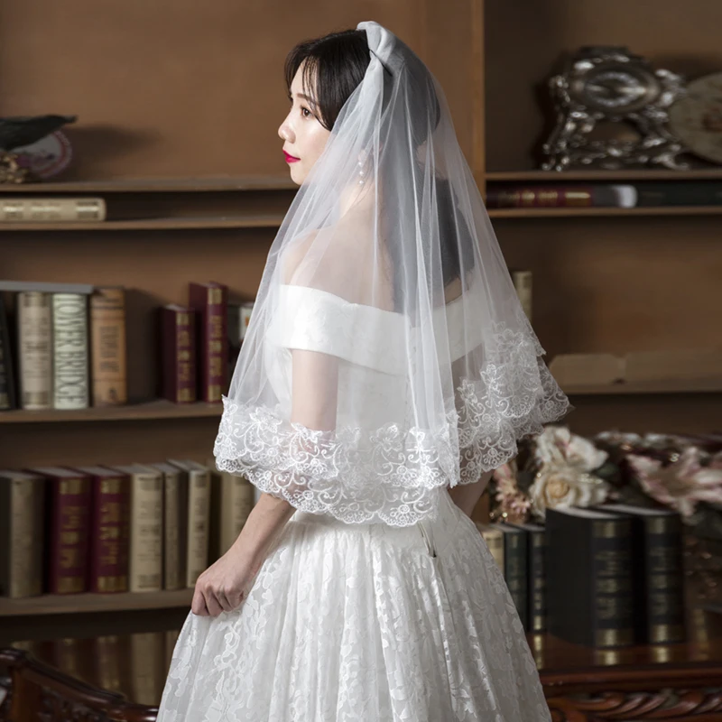 Женская короткая свадебная фата, однослойная белая кружевная Цветочная аппликация цвета слоновой кости, 2019 см, 150