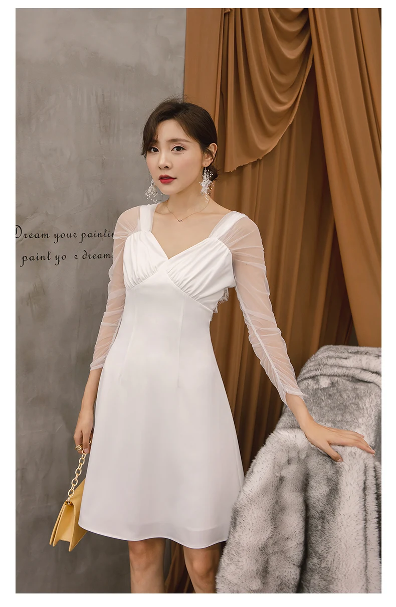 YIGELILA осеннее сексуальное кружевное платье с V-образным вырезом на спине, однотонное платье-трапеция с длинным рукавом, облегающее платье мини выше колена 65127