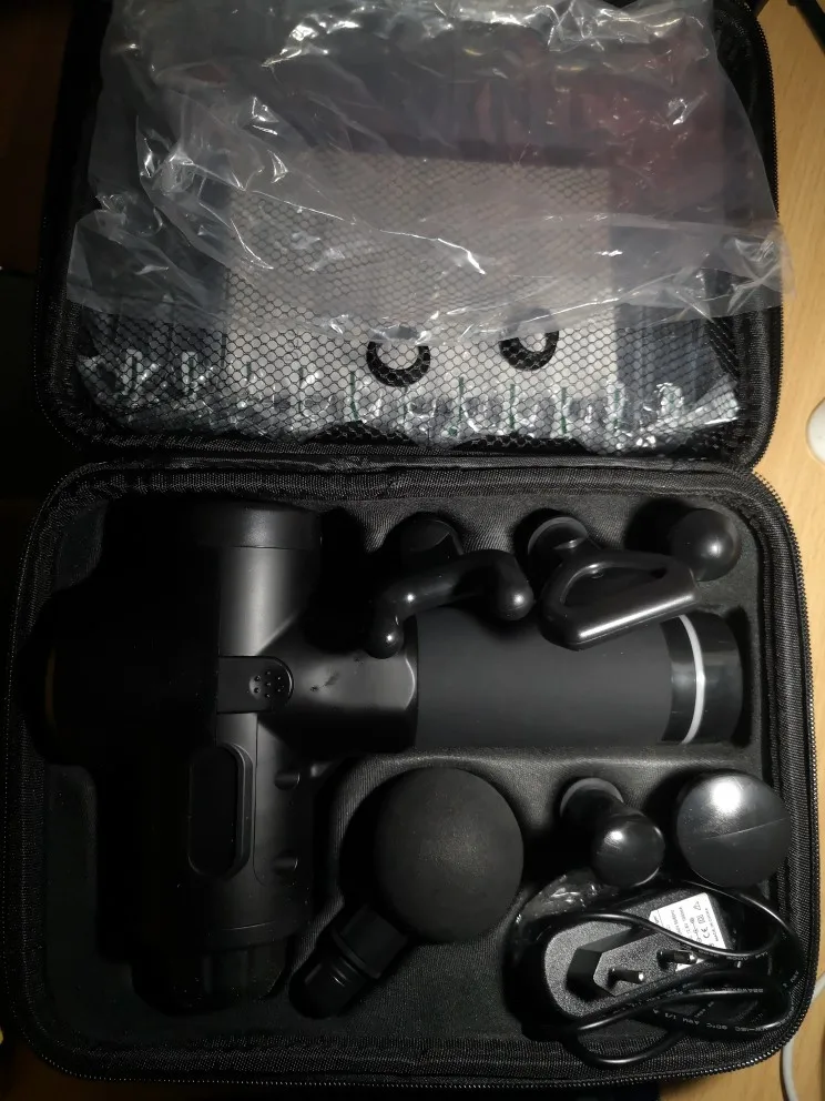 Очень быстро пришёл набор . Все аккуратно и прочно упаковано. С поверхностными мышцами справляется, до глубоких не пробивает . Зарядки хватает примерно на 30-40 мин интенсивной работы . В целом , хорошая вещь !!!