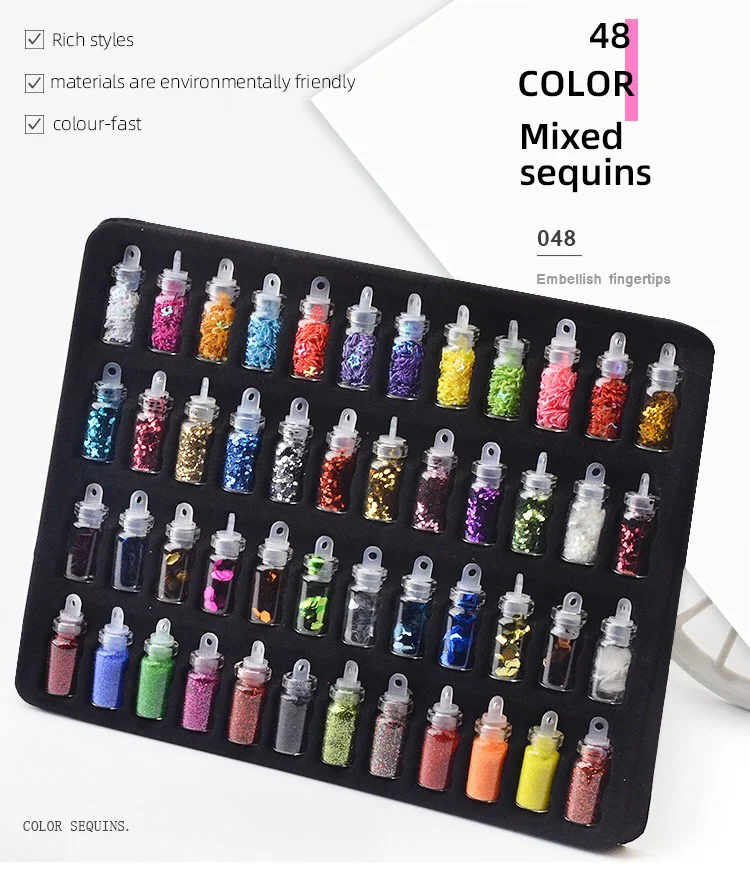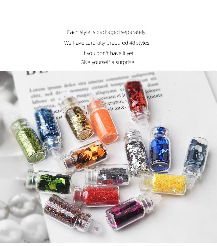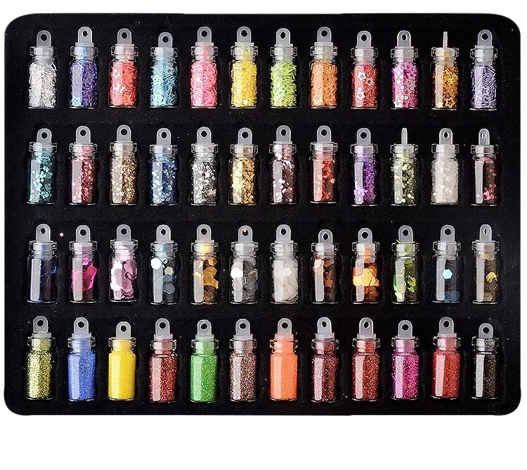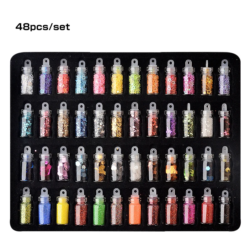 DingDian48 бутылокНабор ногтей драгоценные камни художественные украшения блестки Блеск Стразы порошок Маникюр наклейки смешанный дизайн Чехол Набор