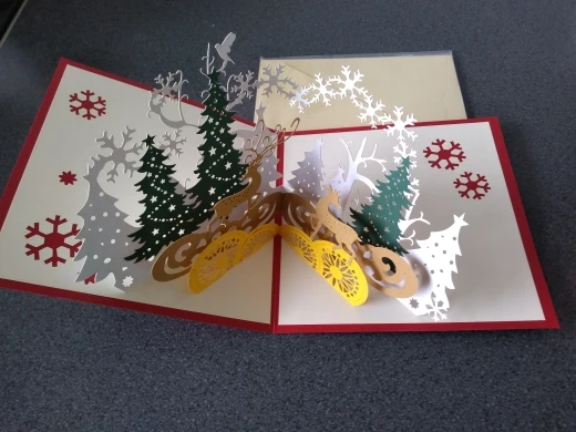 Этот дизайн («лес») имеет действительно замысловатые детали и не был сложен должным образом для моей, так что одна часть, которая особенно тонкая, выглядит так, как будто она может сломаться/порвать... Поэтому имейте в виду дизайн, который имеет более замысловатые детали. Но в целом я очень доволен всем. Я заказал всего 5 карт, а остальные 4 прибыли идеально. Все выглядят потрясающе, и доставка тоже была быстрой :)