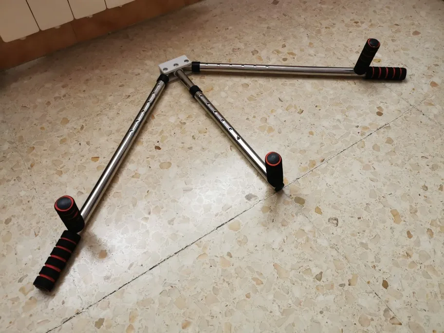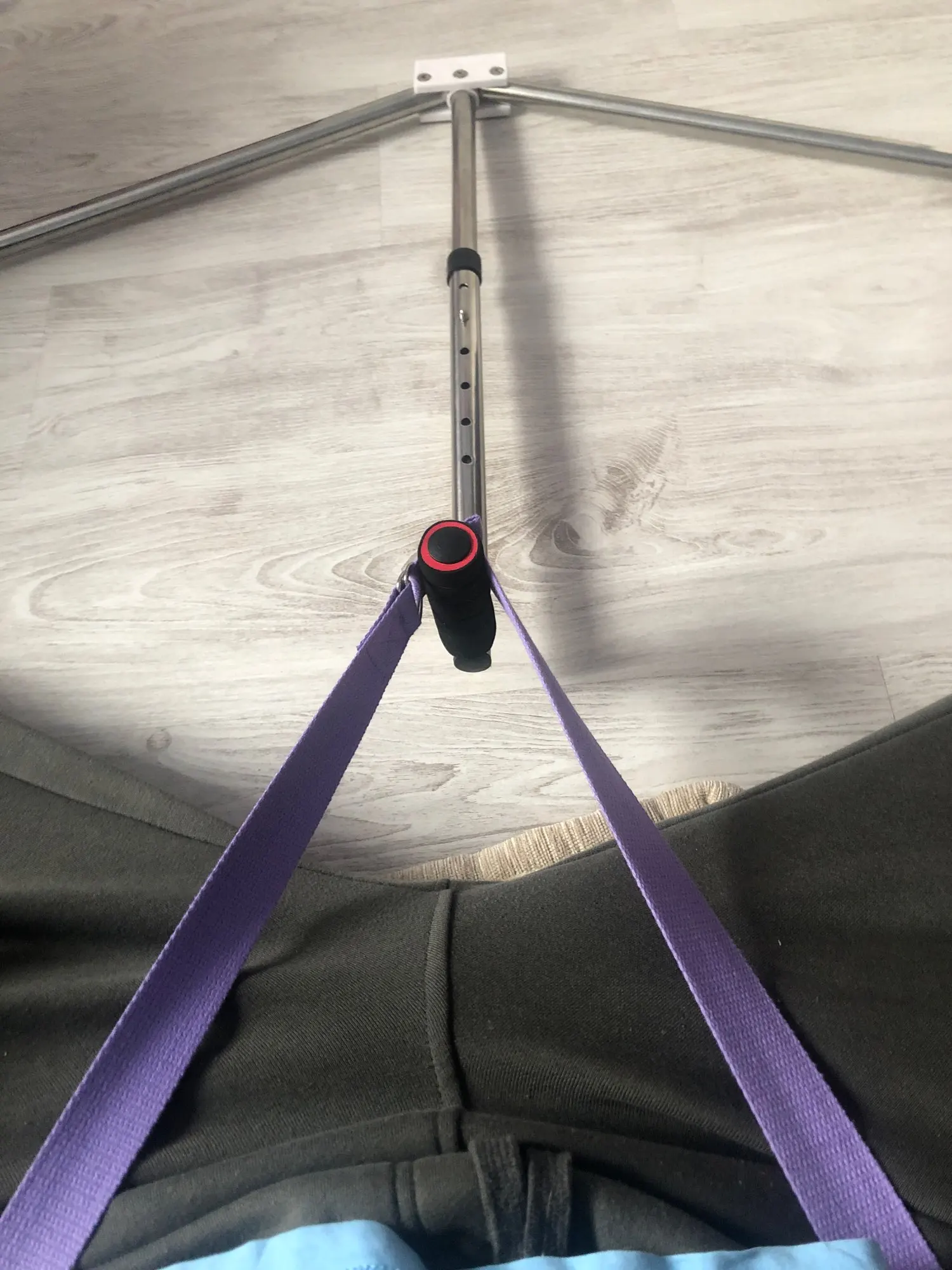 Все согласно рисунку. Занятный способ тянуться на поперечный шпагат, но работает. Буду свои телеса) тянуть, как в молодости, когда сидел на всех шпагатах