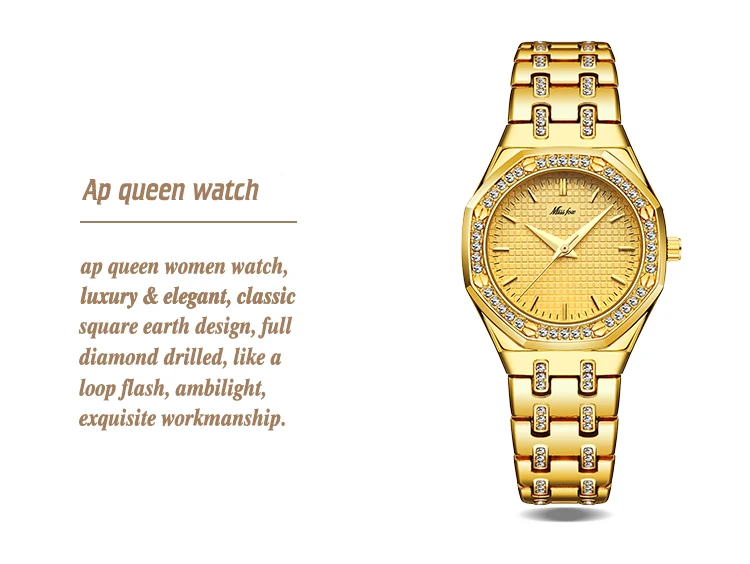 Часы женские кварцевые, водонепроницаемые, золотистые, Xfcs