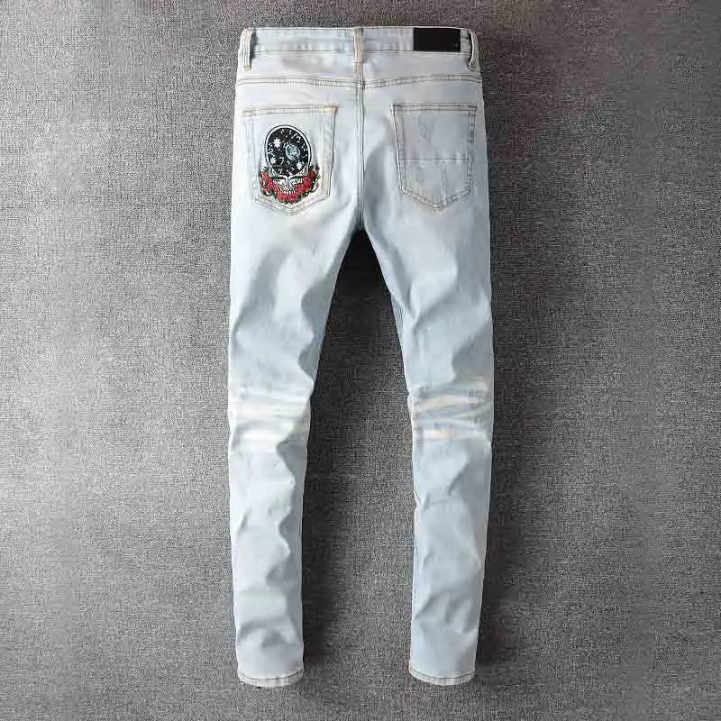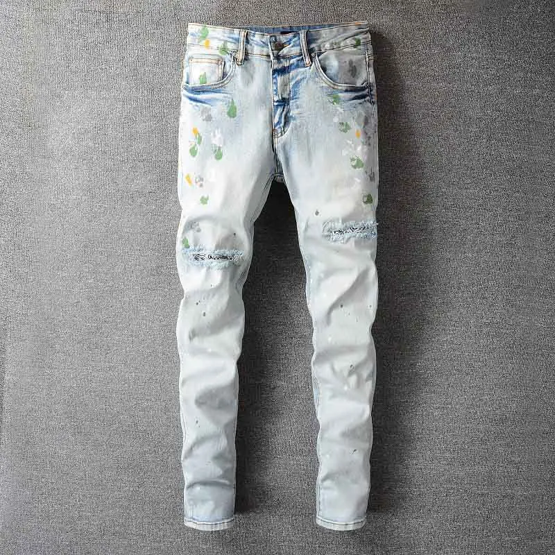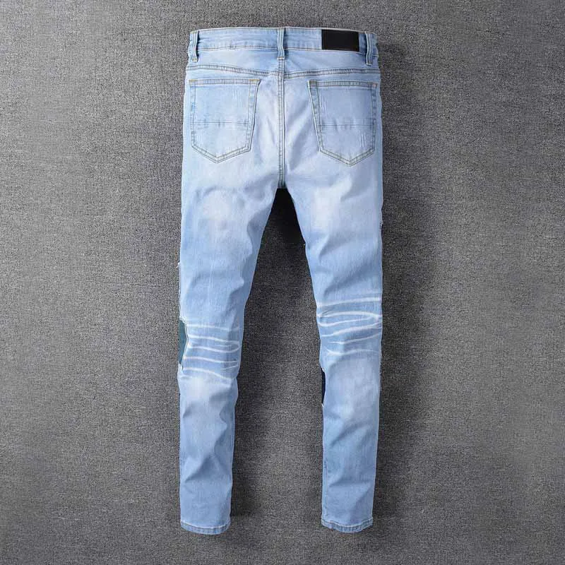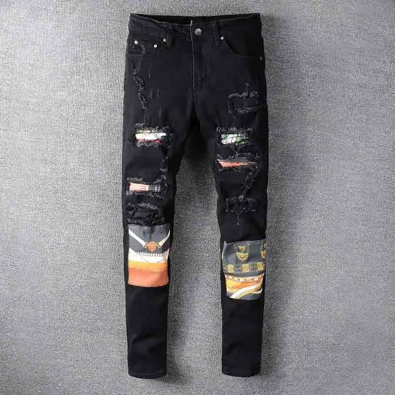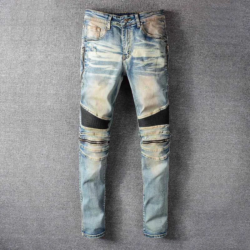 Mcikkny мужские рваные плиссированные джинсы брюки Модные нашивки Лоскутные Джинсовые брюки для мужчин Уличная одежда