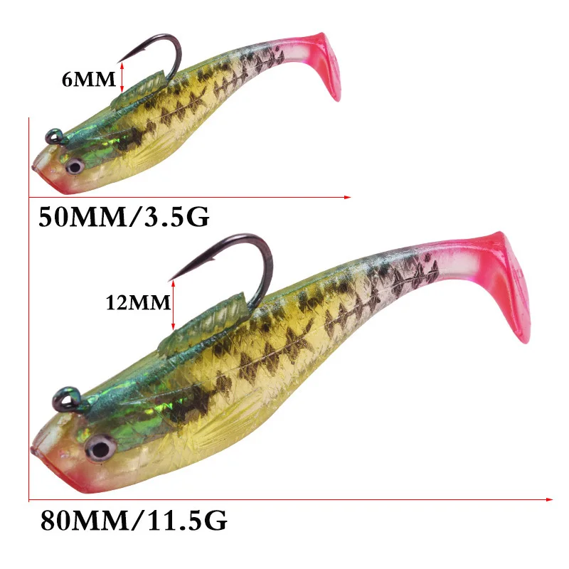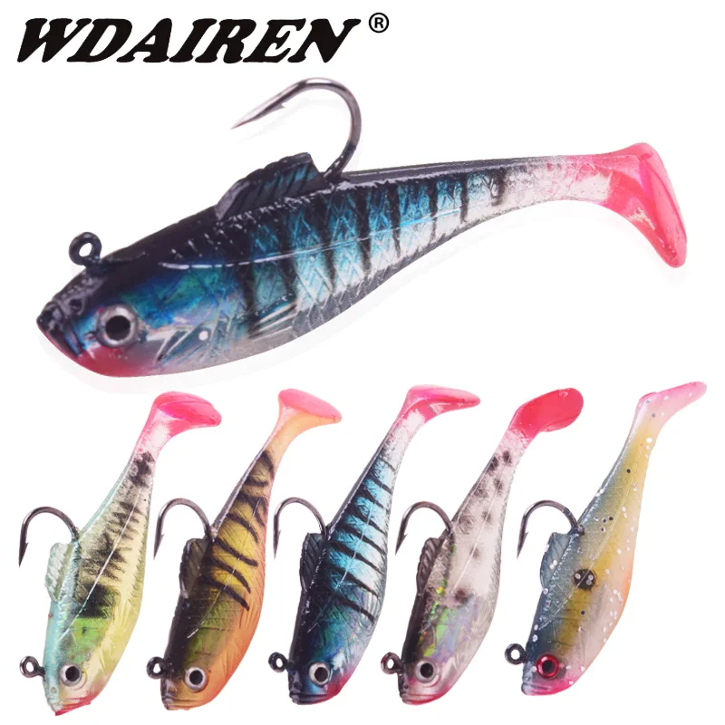 Джиг-воблер с одним крючком, Мягкая приманка для рыбалки с Т-образным хвостом, искусственная резиновая приманка, 3,5 г, 11,5 г, 1 шт.