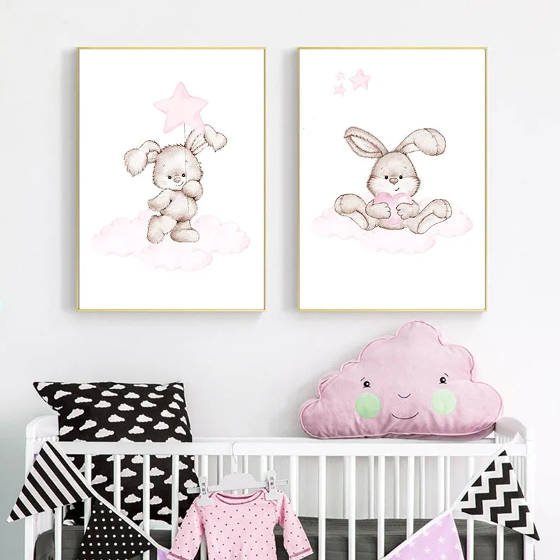 Настенная живопись с изображением розового кролика, постер с изобра...